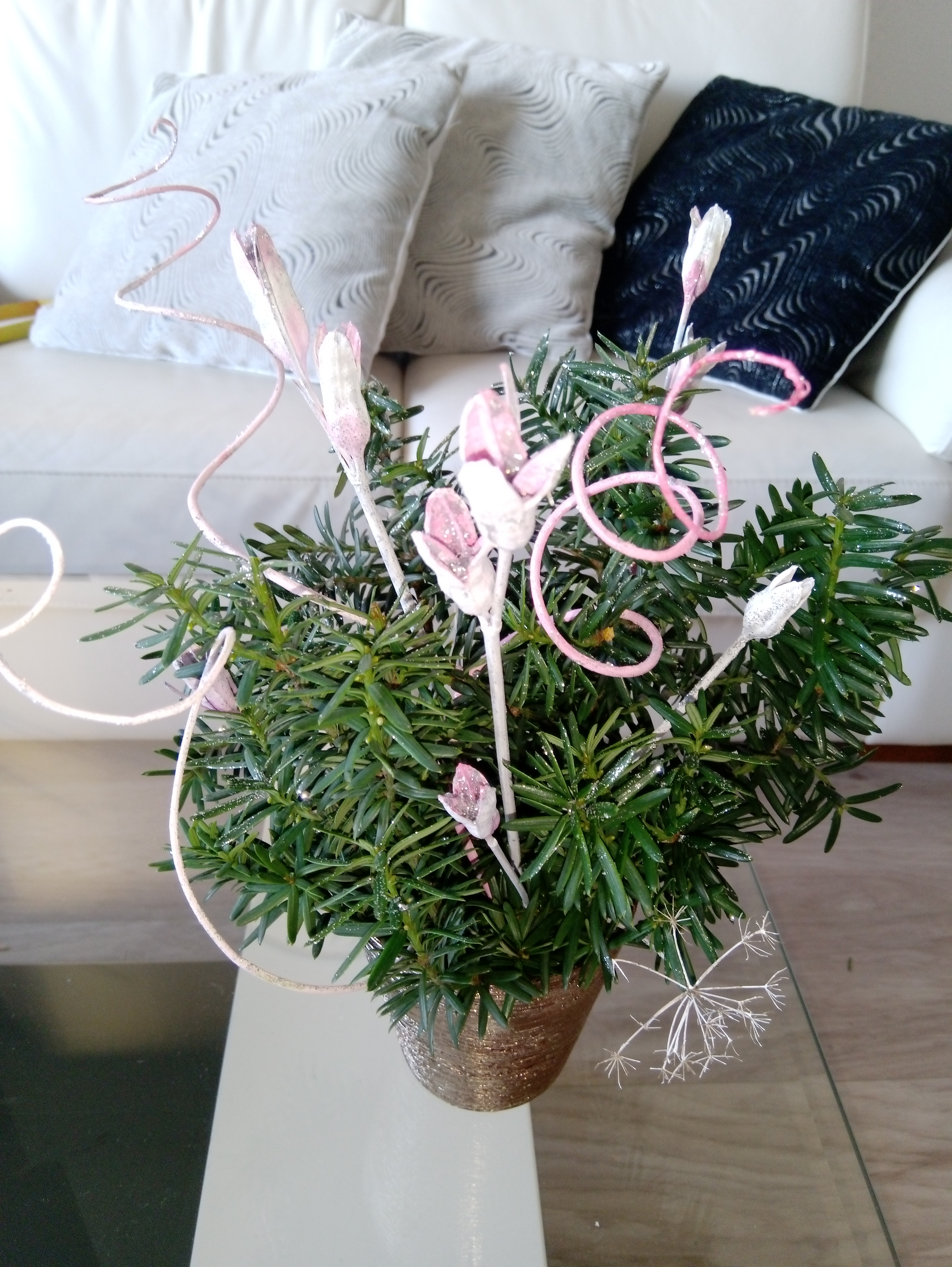 Я такой делала, легко и быстро получилось. А ещё по такому же принципу делала елочки, третий год белоснежные, ничего им не делается. А венок чуть-чуть пожелтел. Зависит от фильтров, наверное.