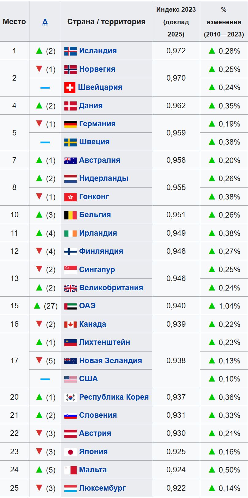 Всего у 8 стран разница между этими местами составляет менее 4 позиций, у остальных намного больше.