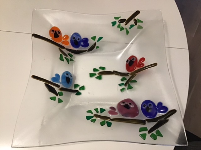 Petter, работы на твоих фотографиях сделаны в стиле плавки. Кусочки стекла складываются в нужный рисунок, бывает что и в несколько этажей и расплавляются в печи. Это самая простая техника, но интересная, никогда не знаешь какой результат получится