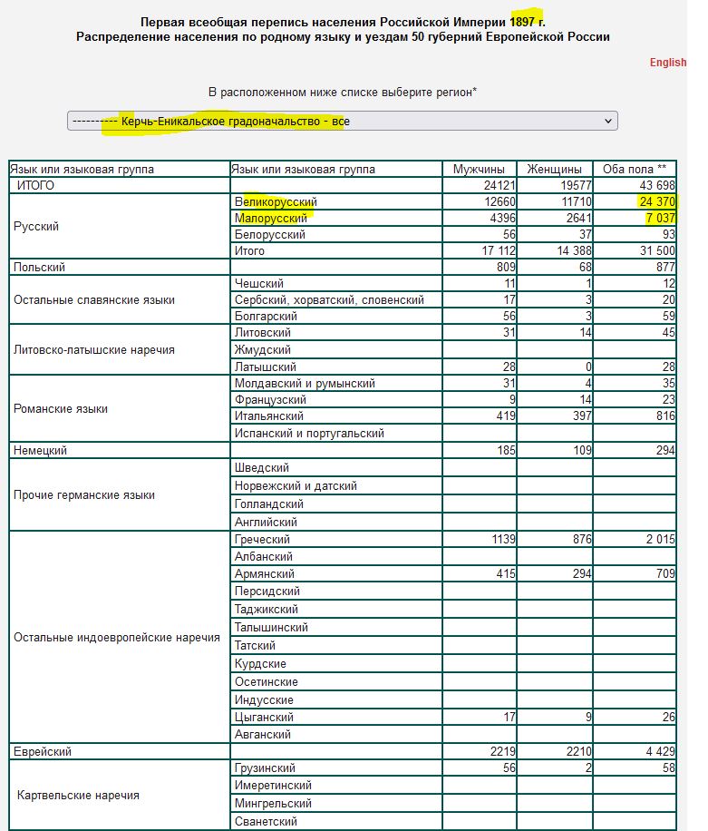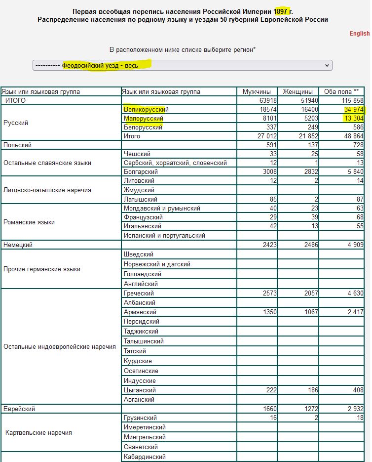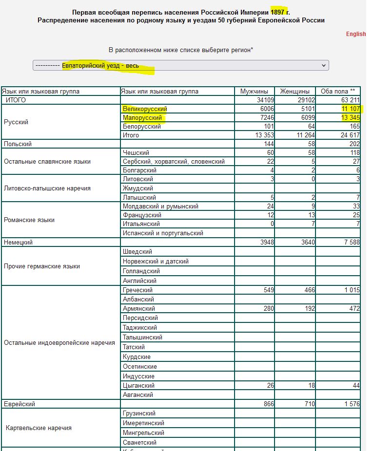 по переписи 1897 родной великорусский язык уже тогда перекрывал малорусский вот так: https://www.demoscope.ru/weekly/ssp...zd.php?reg=1423