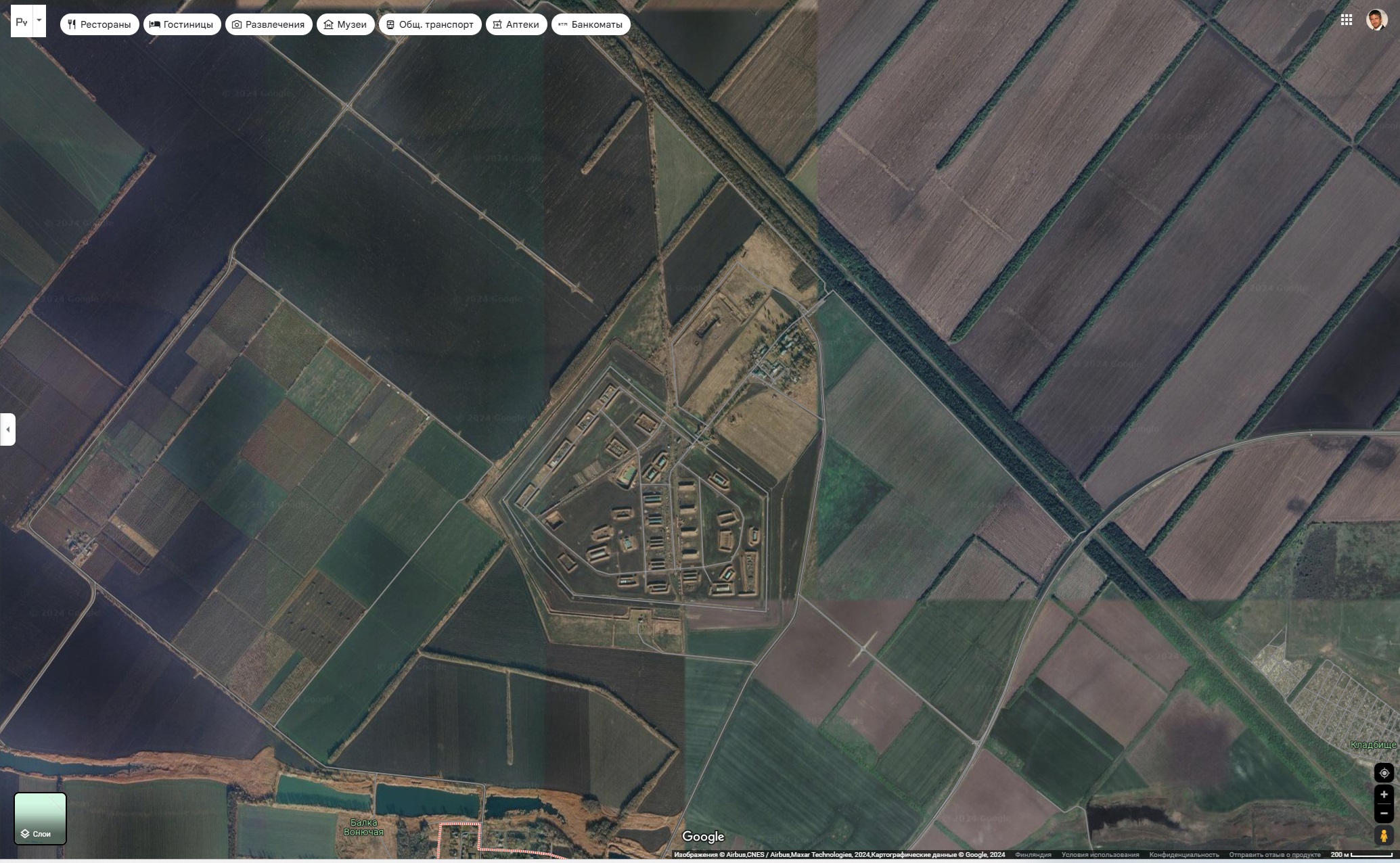 На карте этот "суперсовременный" склад-арсенал тут (в 700-х метрах от города!):
