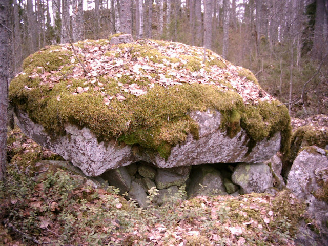 Хочу поделиться своей находкой. Во-первых, гуляя в своих лесах, я натолкнулась на необычный трехэтажный камень. Знаю, что такие есть на Воттовааре в Карелии, где они каким-то загадочным образом образовались на нашей планете, как и Стоунхендж. Я, конечно же, сфотографировала это чудо природы. Во-вторых, меня посетила мысль, а не рук ли человека это дело? Изучив камни Карелии, а также Скандинавии, пришла к выводу, что он точно такой же: между 1 и 2 камнем есть 3 маленьких камушка, являющихся опорой для второго, самого большое. А на втором камне есть камень меньшего размера, который тоже имеет маленькие каменные опоры. Камни внушительных размеров. Может, ученых-экспертов вызвать? :umnik: Я не первооткрыватель, рядом люди живут, и дорога лесная, но вдруг для соседей это обычное явление, а для ученых - нет. А Вы находили что-нибудь подобное в Финляндии? видны маленькие камни два сейда |