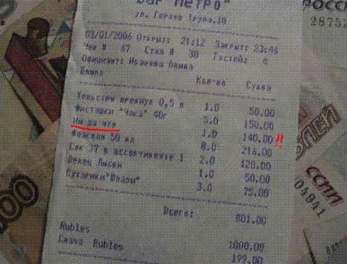 Я думала такое только на Украине бывает Мне однажды принесли счет, где отдельной строкой было вписано -Музыка - 2грн. Под музыкой подразумевался магнитофон с колонками и 16 летний паренёк, изображающий диджея и меняющий в нём диски