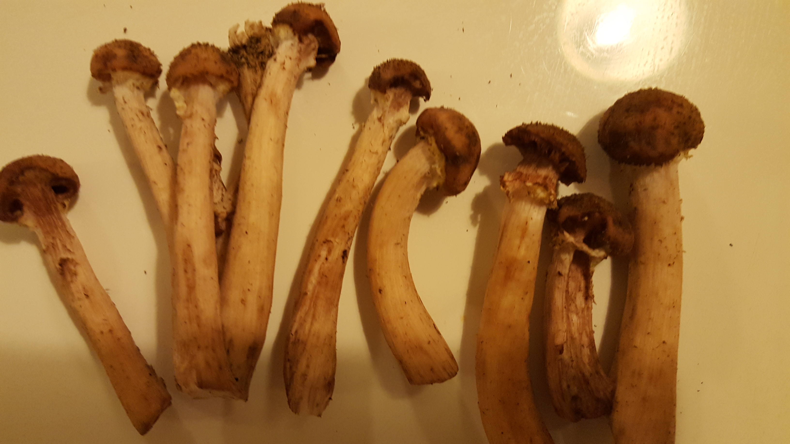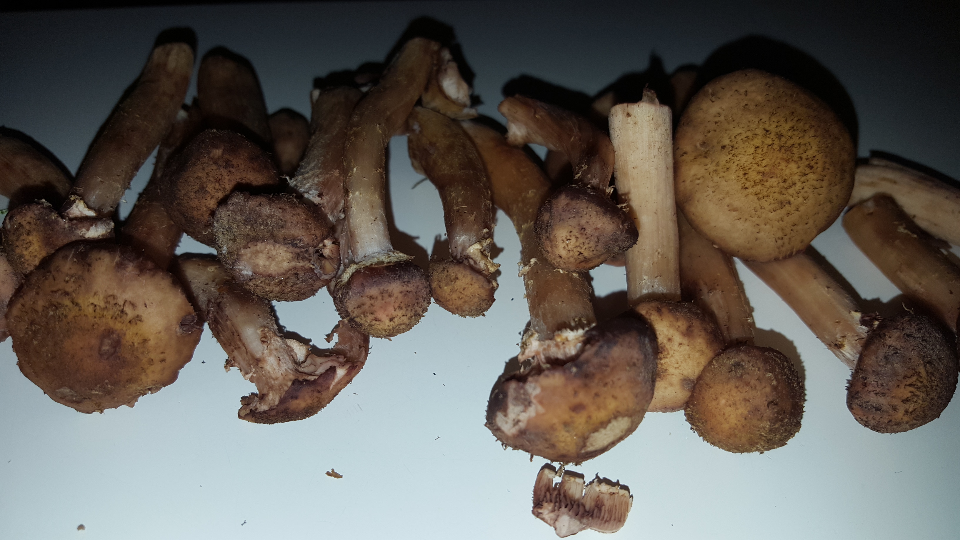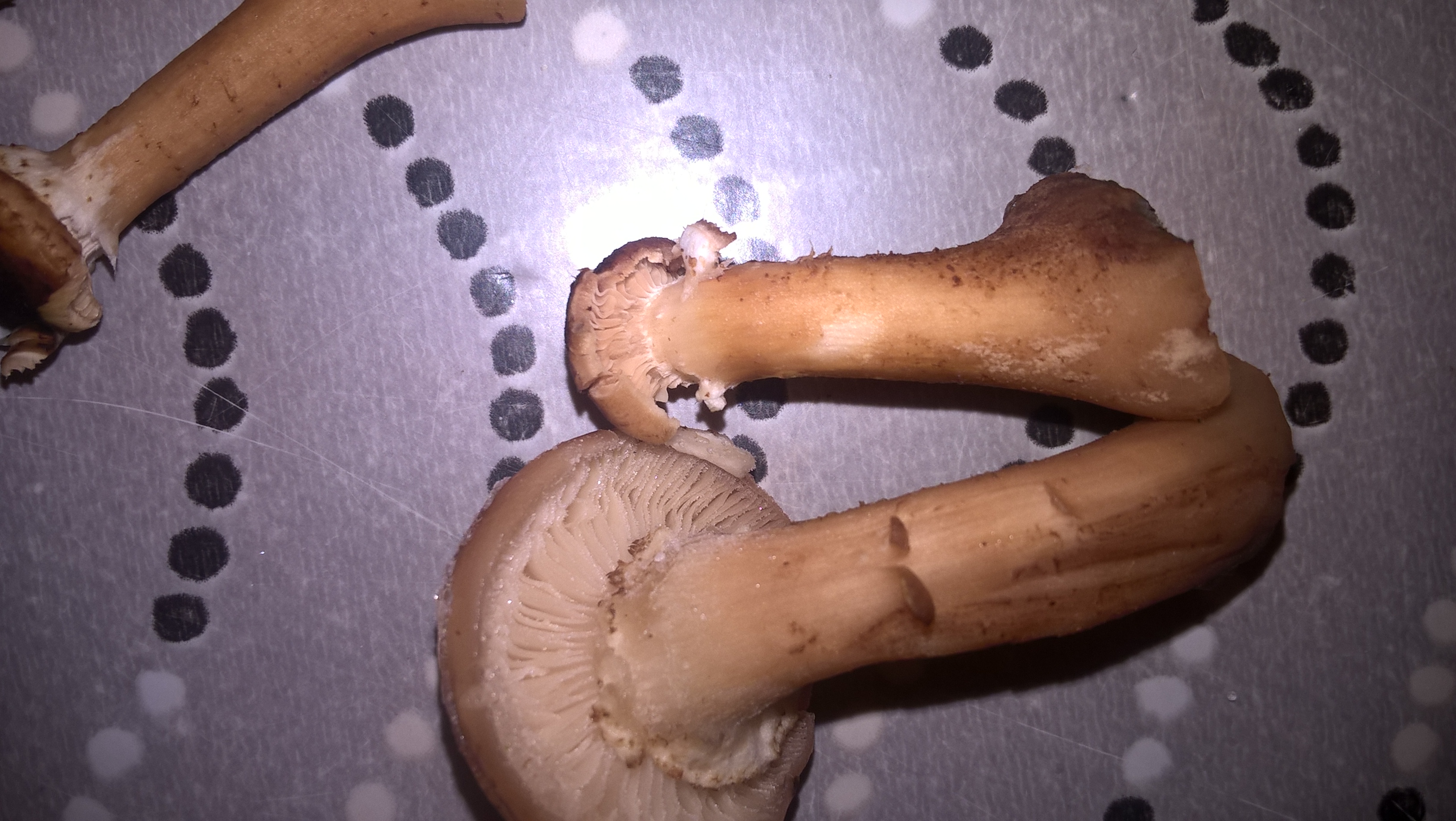 Просто странно. На одном пне росли такие нормальные опята с белыми пластинами, а на соседнем пне такие красивые, крепкие, но пластинки все как у шампиньонов- темные.