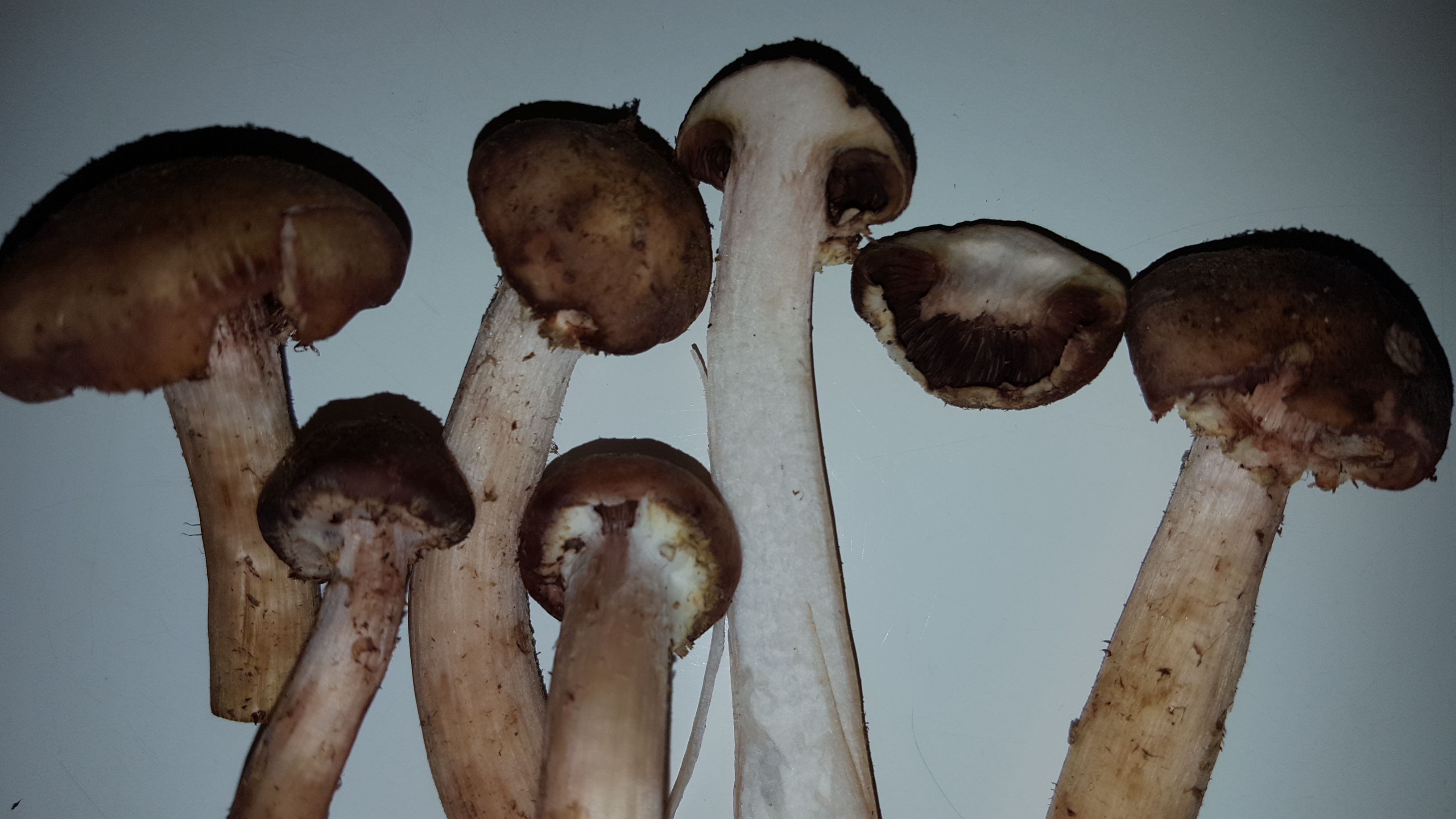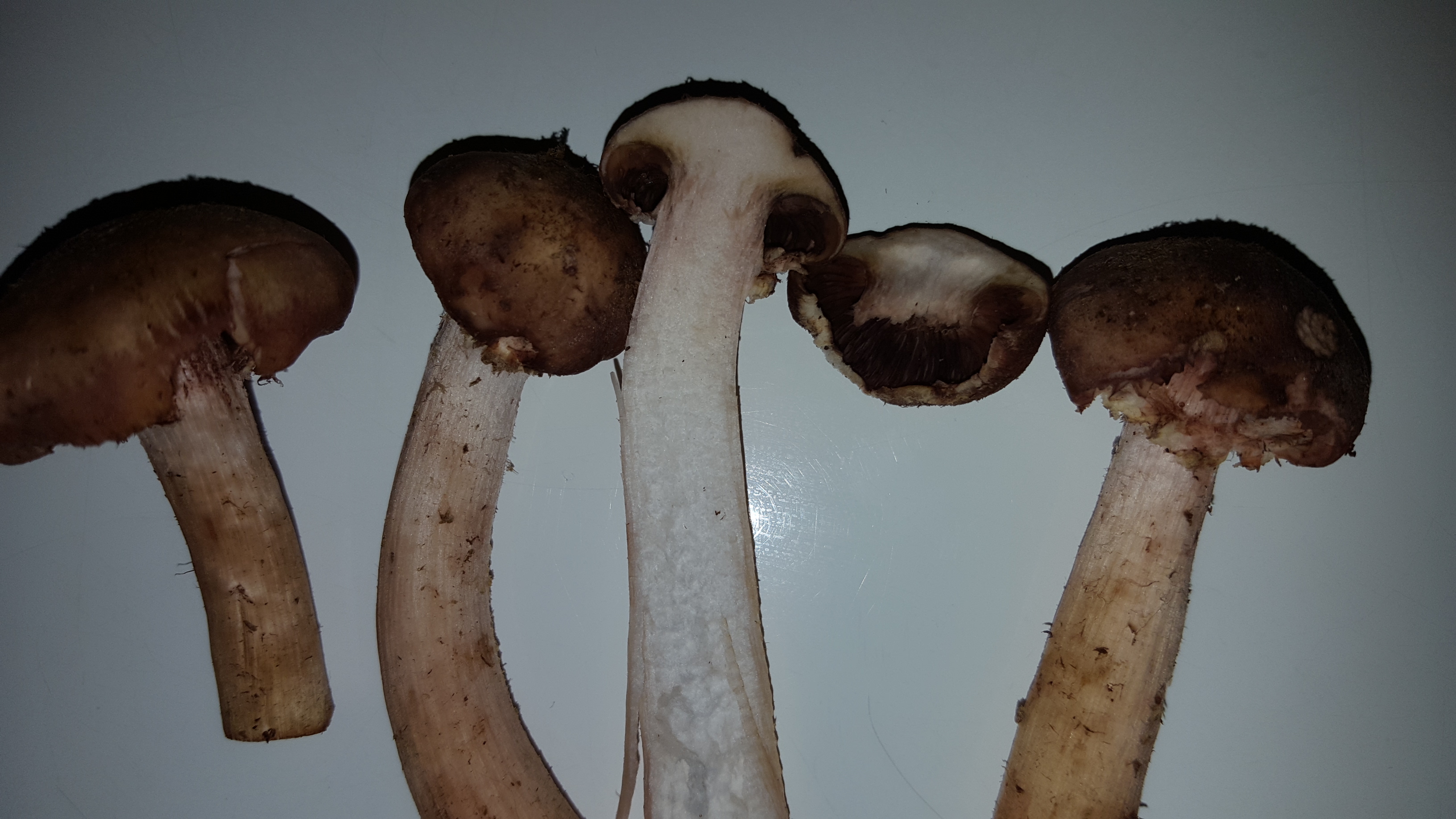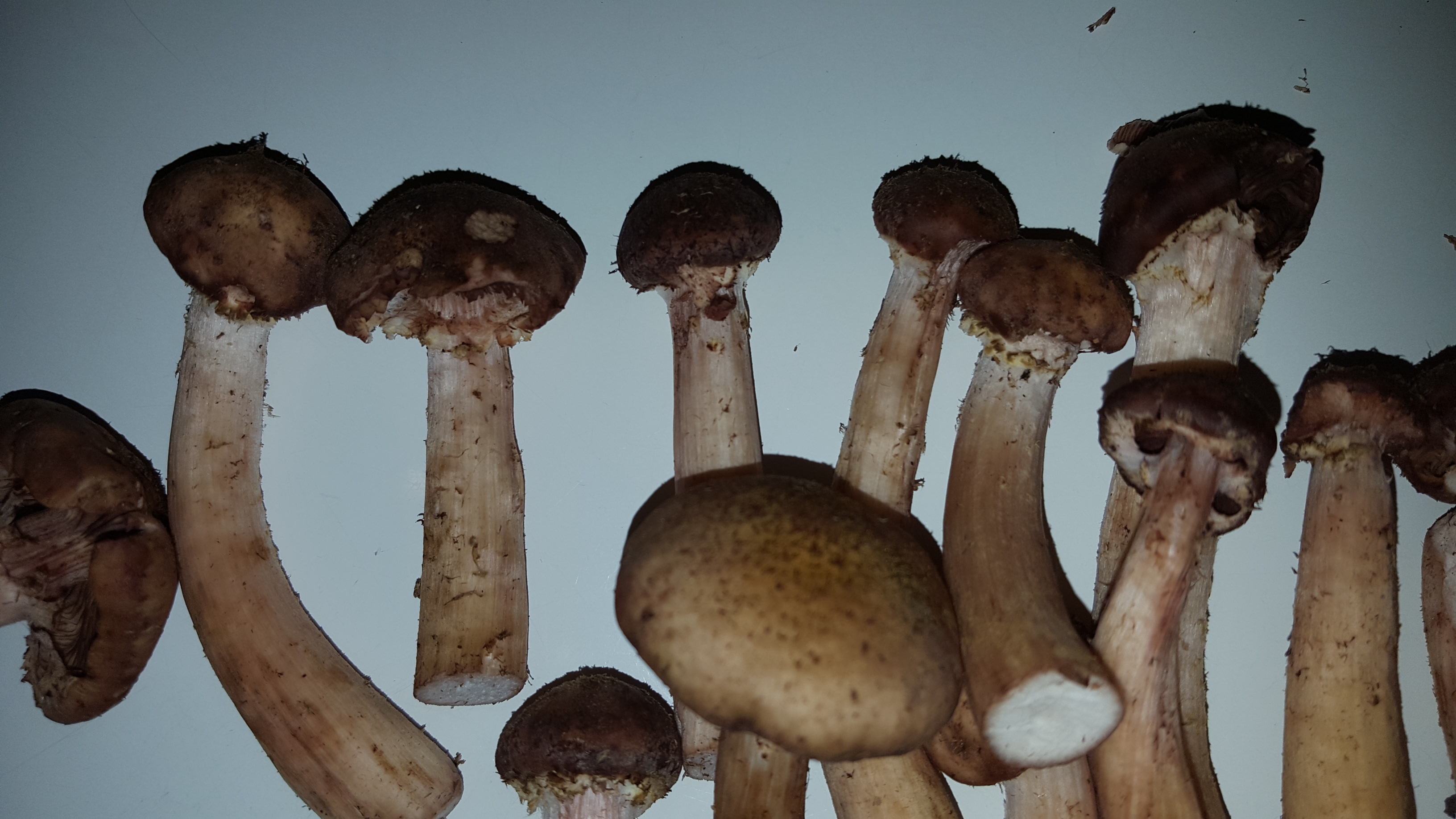 Просто странно. На одном пне росли такие нормальные опята с белыми пластинами, а на соседнем пне такие красивые, крепкие, но пластинки все как у шампиньонов- темные.