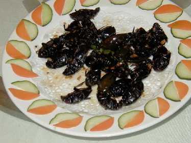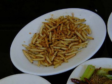 живой тараканчик 10 см длиной или скорпионы!. а потом там всякие дождевый червячки! энное количество. и народ кушает- за деньги!!!!