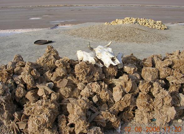 Это не соленое море, а озеро и то этого озера ничего не осталось, одна соль. Высохло все давным-давно. А розовое, так это в этих кратерах соленая водичка плещиться, которая насыщена минералами. Уровень воды где-то полметра и ниже. В этих местах добывают "Роза пустыни", это такое кристаллическое образование из песка и соли, которое напоминает розу. Очень хрупкое и поэтому не купили с собой. Также на поверхности высохшего озера можно увидеть миражи. :смиле: