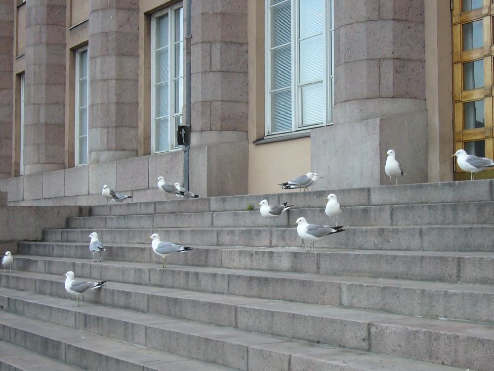 Была же статья зимой в Хельсингин Саномат, что весной их пострелять собирались. По-моему их отстреливали, по сравнению с прошлым годом их на Кауппатори меньше стало. Да и много где знаков появилось в этом году, что "птиц не кормить". Думаю, что правление города по-тихоньку соображает...