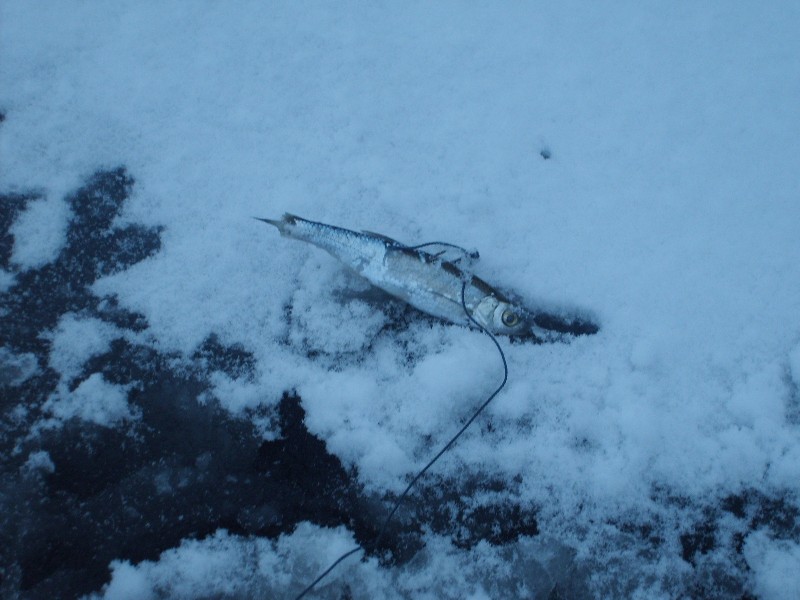За 4ч рыбалки вчера, только у одного живца хвост откусили. Лед на этом озере всего 3-4см, ползал только в камышах.