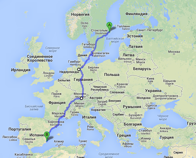 Кто-нибудь ездил на машине, из Финляндии в Испанию? Сколько дней занимает езда на машине? И каким путем лучше ехать, от Финляндии до Испании?