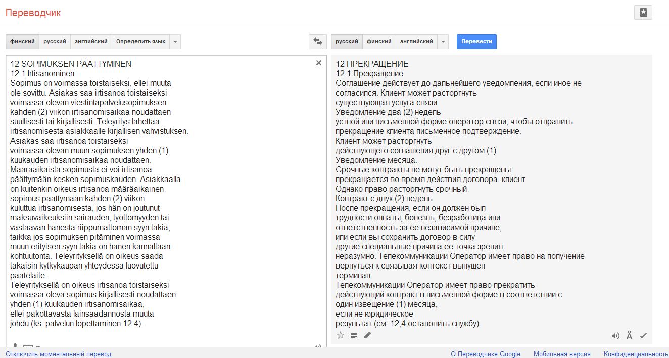 Соблазнила Sonera "оптоволокном" и ценой. Звоним в DNA 23.6 отказываемся, оплачиваю последний счёт за июнь. С 1.7 подключились к Sonera. Но опять приходит счёт от DNA, звоним, говорят, надо было отключатся до 20.6... Посмотрели на их сайте в надежде найти такое их положение об отключении, ничего не нашли, или плохо искали. С языком проблема... Уважаемые форумчане, может кто сталкивался с подобным, или существует какой-то закон?
