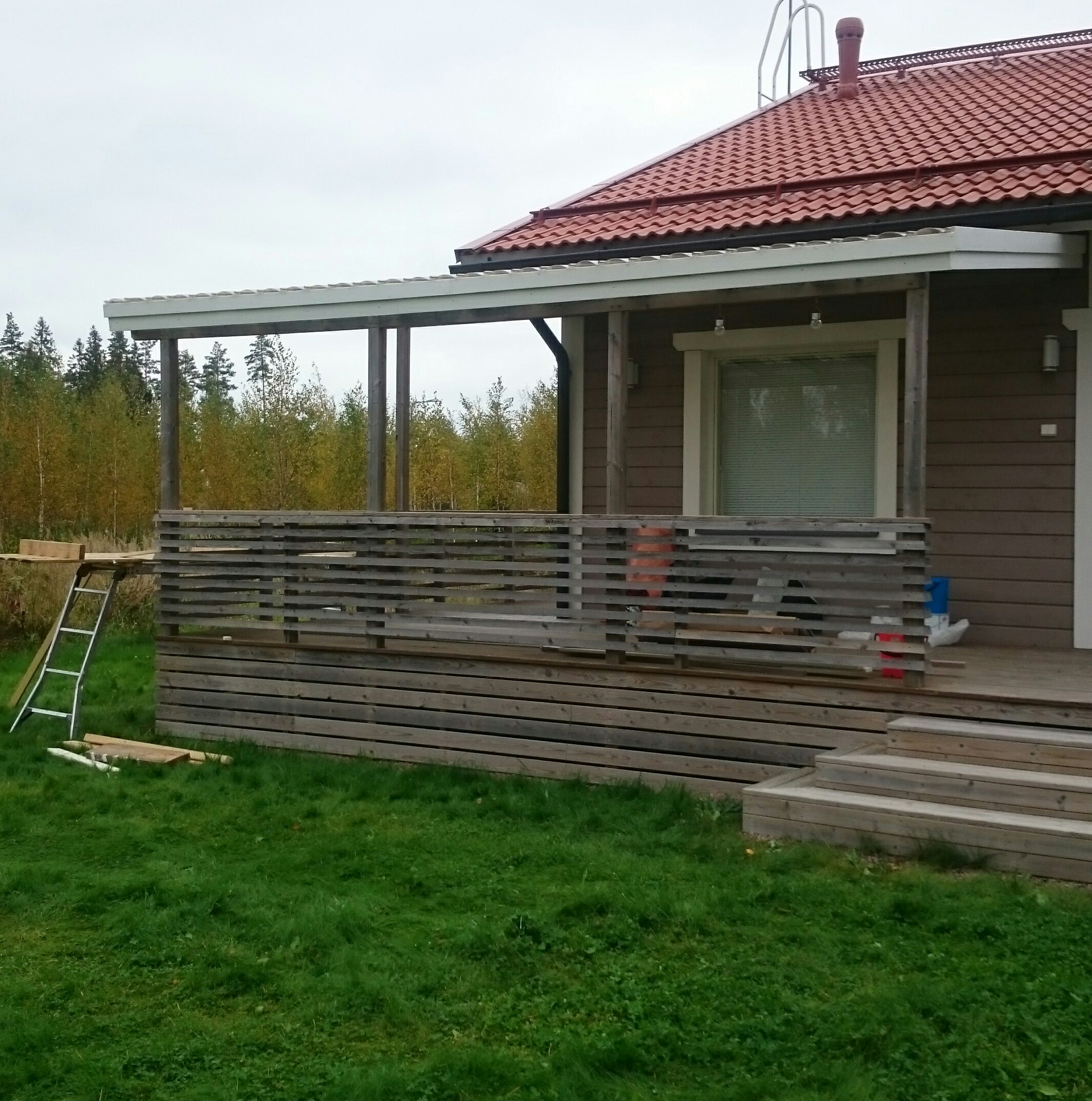 Террасу только что заказывали в Itä-Helsingin lasi. Примерно 6,5 х 2 м, стеклянная крыша над половиной террасы (вторая половина под балконом), 8 раздвижных дверей и 3 створки окон с одной стороны. Стоило 8900. У соседей проект немного другой (меньше дверей, больше окон), стоило чуть больше 7000. это было самое дешёвое предложение. Результатом очень довольны.