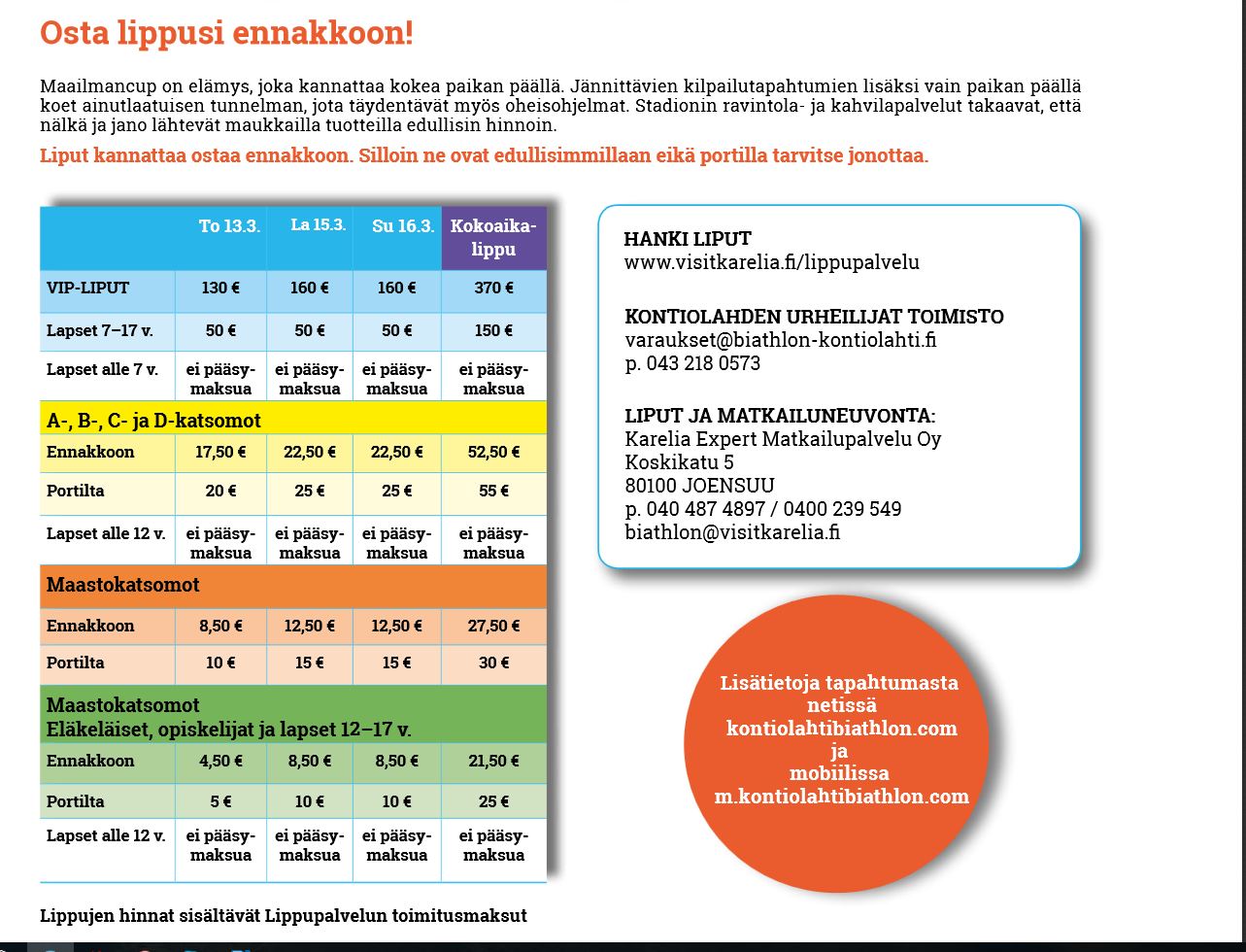 Здесь требуется уточнение: в Лахти в этом году будет Чемпионат мира по лыжным видам спорта ( проводится раз в два года, а в Лахти 7-ой раз в истории), а вот в Контиолахти будет этап Кубка мира по биатлону (всего их 9 за сезон).С прошлого года Контиолахти был выведен из ежегодного календаря из- за низкой посещаемости, но вот теперь повезло и есть возможность съездить.