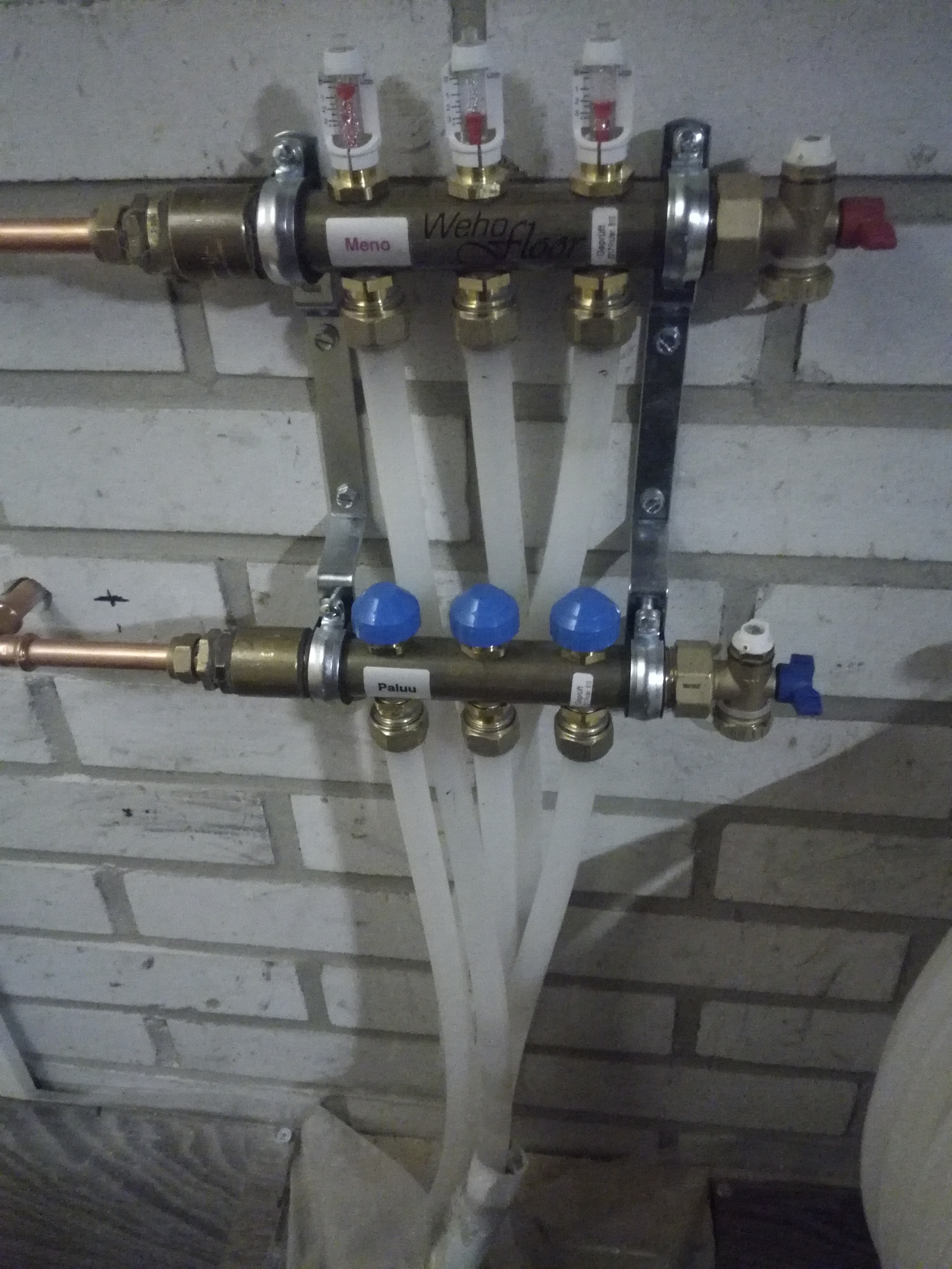 Мы купили трубы для отопления сами установили теплые полы в гараже . У нас там собаки живут. Вызвала фирму что бы подключили к маалямпо. Я сказала что купили трубы в Финском магазине и якокескус. Они работу сделали подключили . Как оказалось полы не греют. Сначало сказали что нужно пумпу менять слишком слабая. За 250 евро.