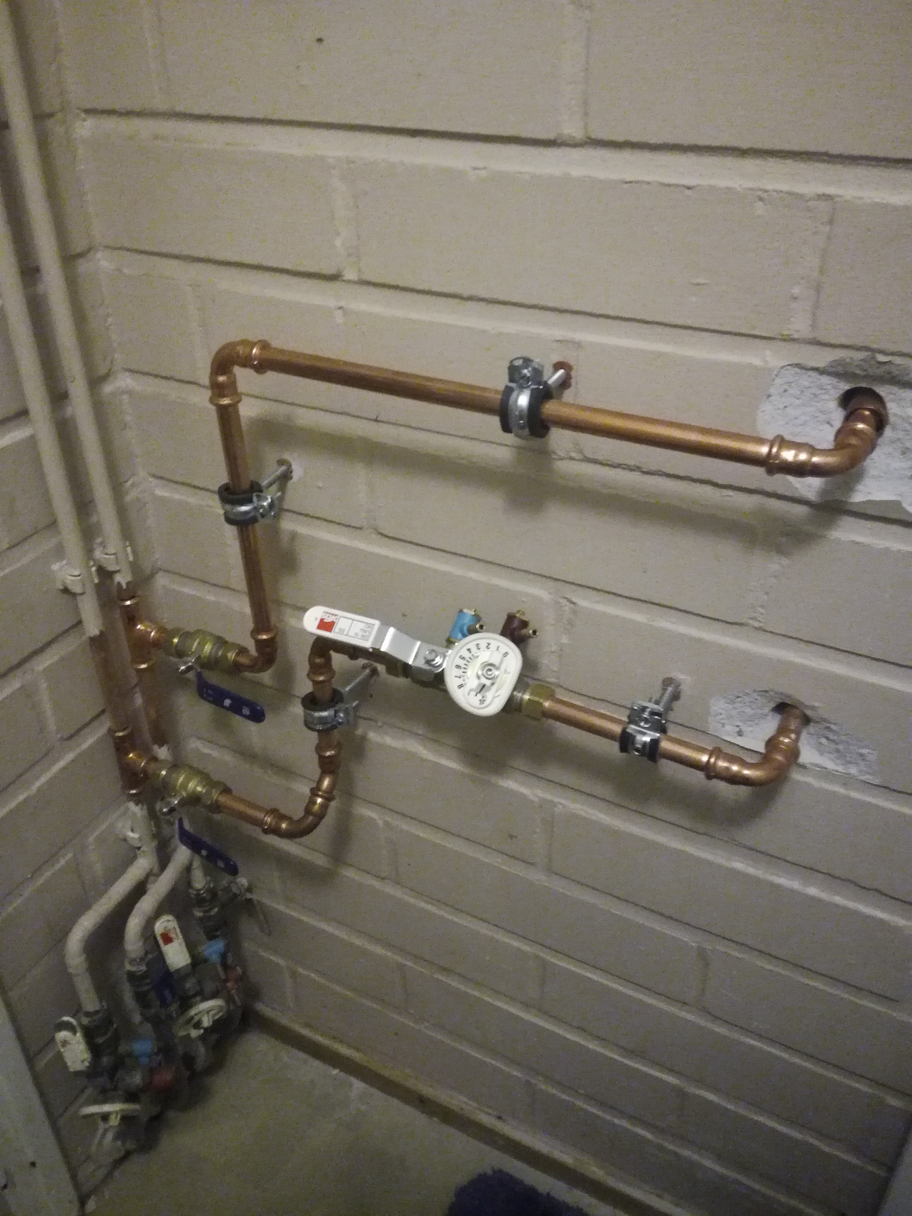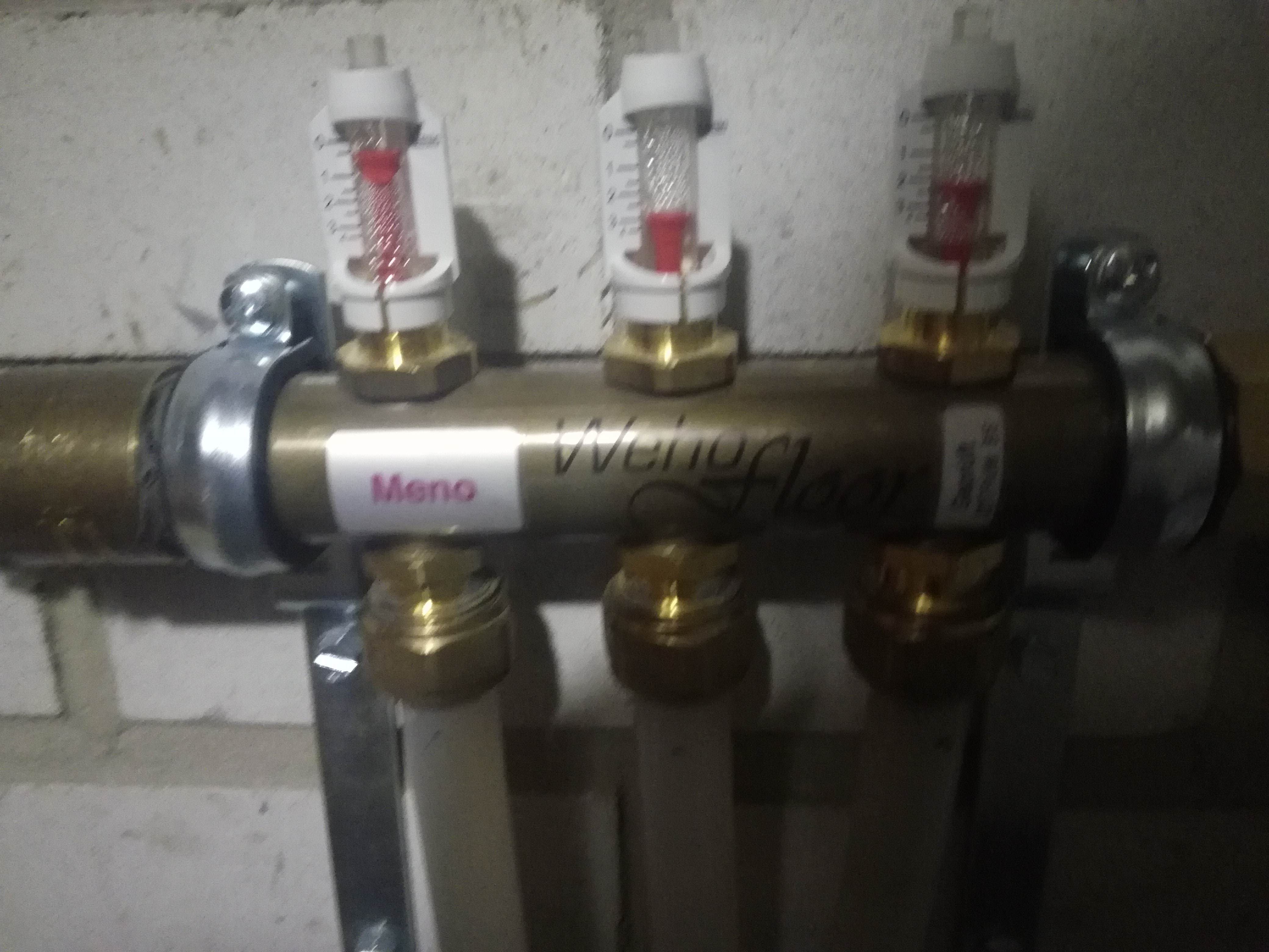 Внизу под новыми трубами вентилят от подогрева пола в душевой. Может действительно диаметра труб не хватает на душевую и гараж ? Вода в батареи тоже подается по очень тонким трубам. Это влияет диаметр труб ? Мы в гараже полржили трубы большого диаметра думали теплее будет .