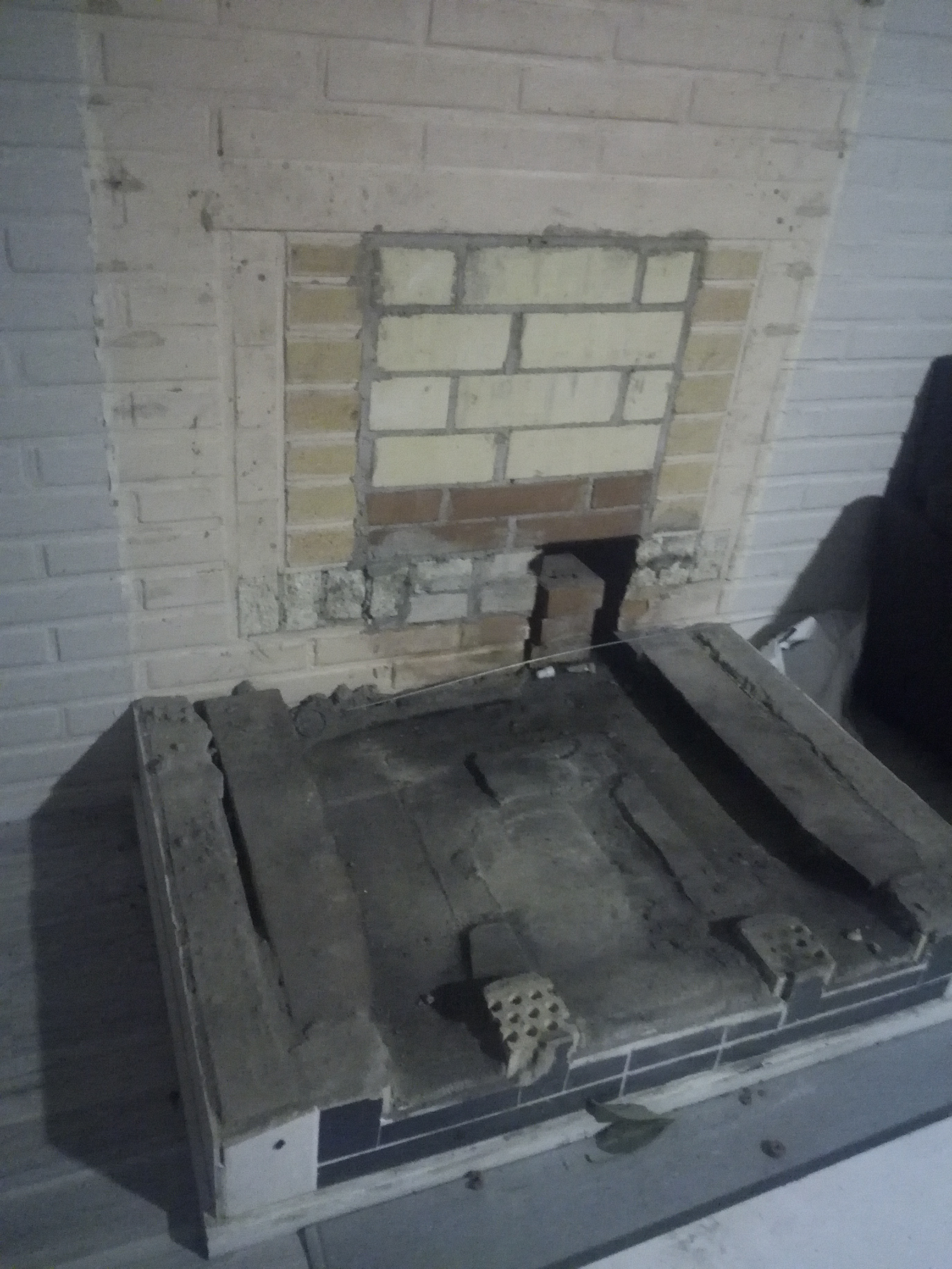 Сегодня будем постамент делать заливать бетоном что бы ровная поверхность была. Потом низ выложим черным кафелем. Сзади за каминам будет плитка под камень. Сейчас это выглядит так :