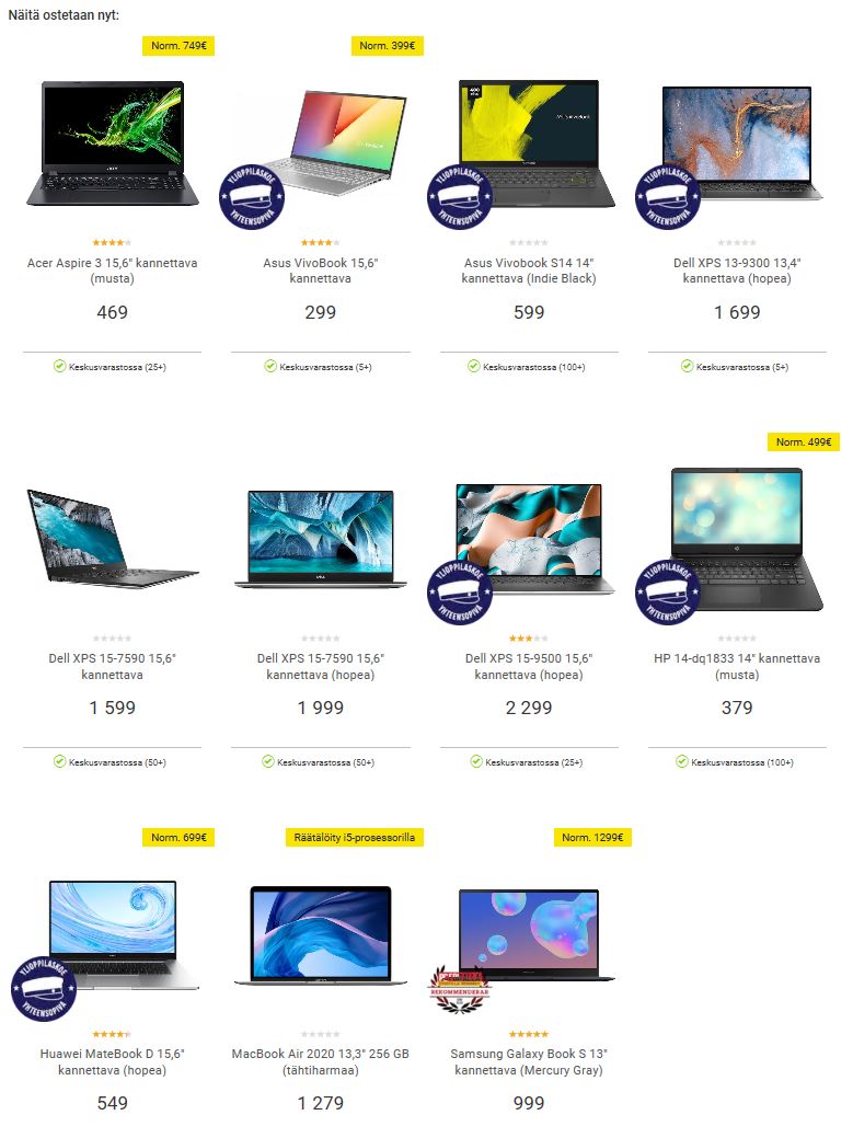 Да, прикрепил к сообщению выше. У Gigantti в этом году были прецеденты, когда по акции скидывали почти 40% цены с ноутбука. А эти ребята с kannettavatietokone.fi - очень прижимистые. Обычные цены у них вроде бы неплохие, но они с них практически не подвигаются. В отличие от Gigantti и Verkkokauppa, где иногда можно ухватить что-то с очень большой скидкой. Особенно в Gigantti.