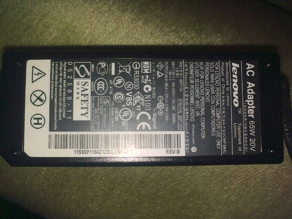 Если не уверены, что нашли нужные циферки - сфотографируйте блок питания примерно так (это мой 20v 65w), прочитаю по фотографии.