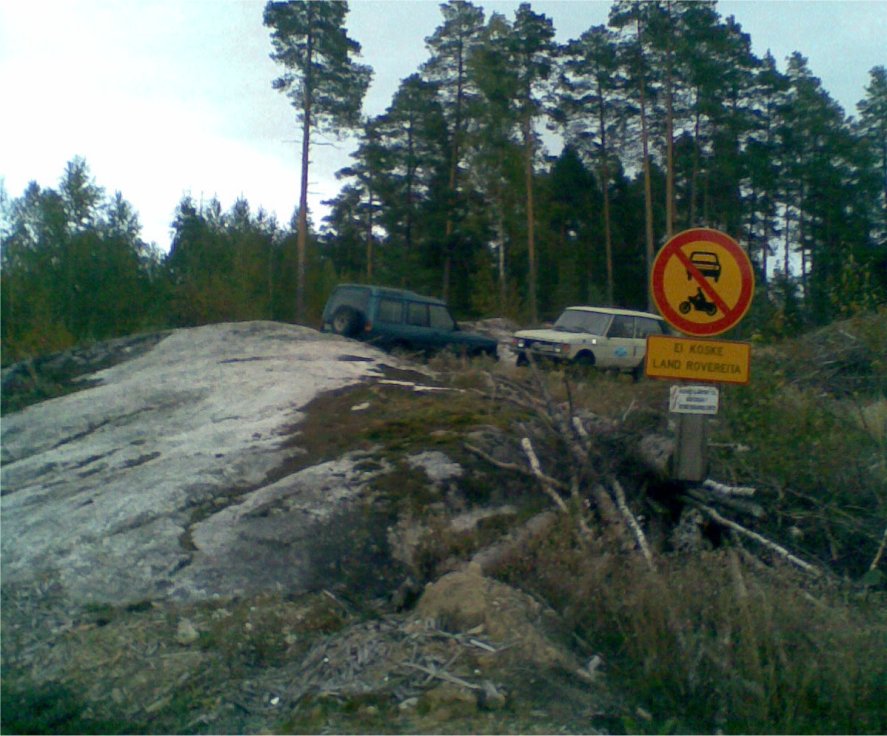 А это сфоткал у авто-сервиса Ланд Роверов в Турку... Надпись под знаком "проезд запрещён" делает исключение "не косается Ланд Роверов"