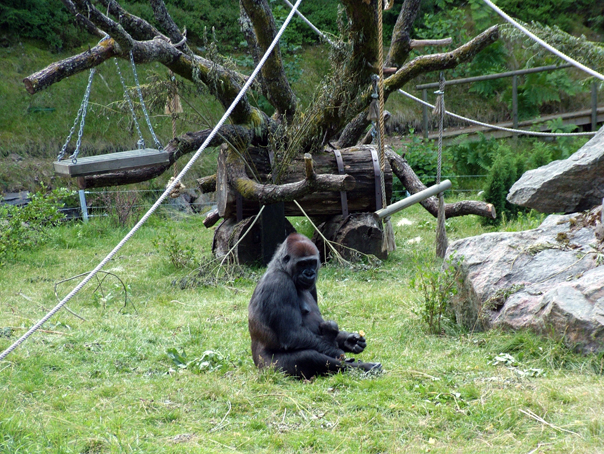 Мы на шоу в дельфинарий не успевали по времени. Но наблюдали не менее интересное шоу с гориллами, аниматор с микрофоном кидала им яблоки.