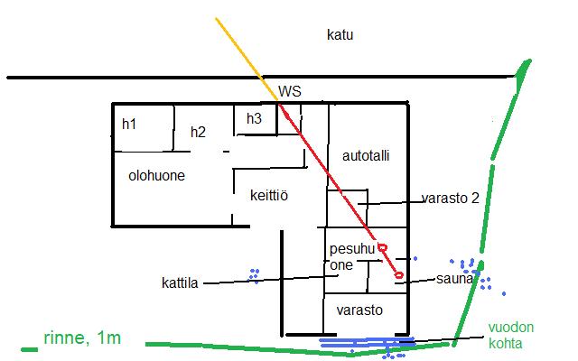 "Колодец" = kaivo. Т.е. сток вниз в viemäri, он старый, стандартный, и, видимо тоже из бетона, хотя может быть и металлический. Рисунков у прежнего хозяина не было, в kaupungintalo их, как оказалось, тоже нет. С хема достаточо проста, попробую нарисовать сам, только это будет совсем непрофессионально.