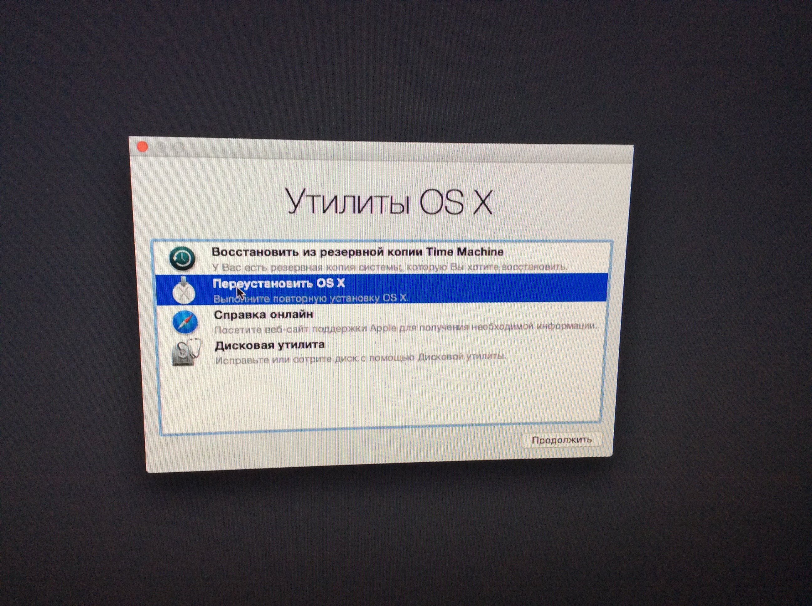 Все постирала, ставлю утилиту, переустановить ос х, выходит окошко ос х Ёсемите (именно это была последняя версия).