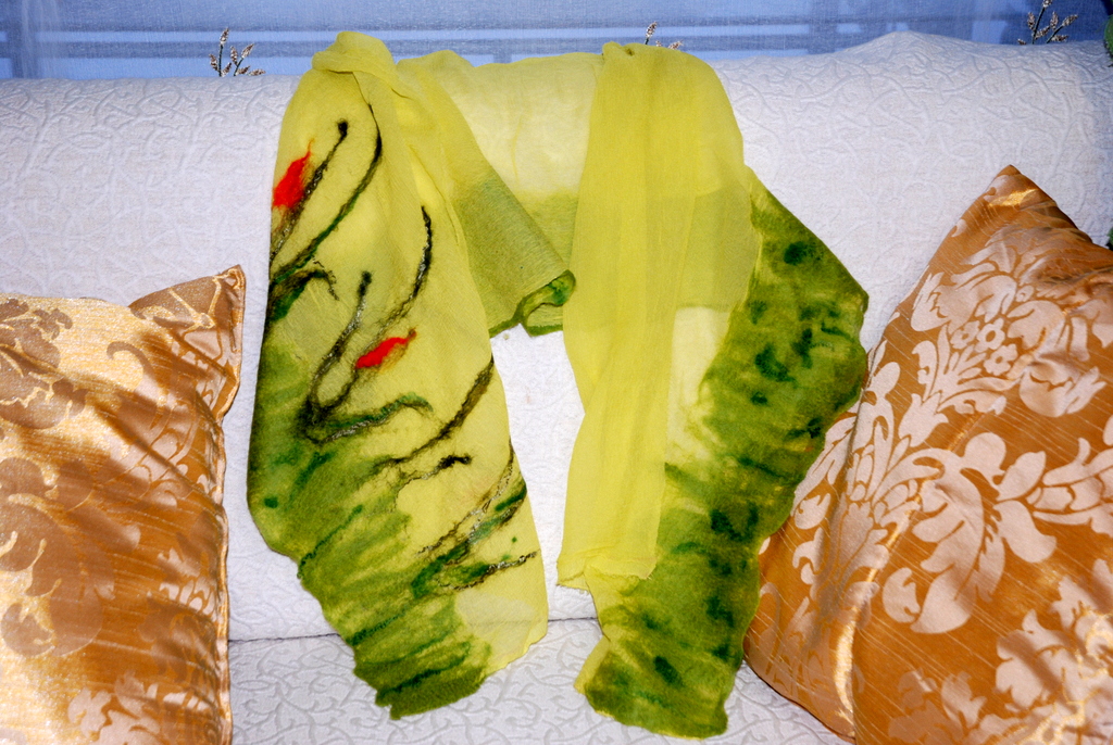 Так давай ко мне! Я энтих маков уже наделала! Сумки ещё не освоила но шарфы делаю очень красивые. Пошли на курсы! Картины тоже красивые.Моя подруга в Савонлинна делает безумные вещицы. Ездила в Питер на курсы летом.