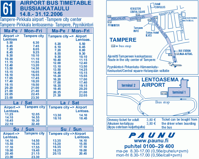 Paunu Oy, т.е. простой автобус (номер 61) стоит 3,80€.