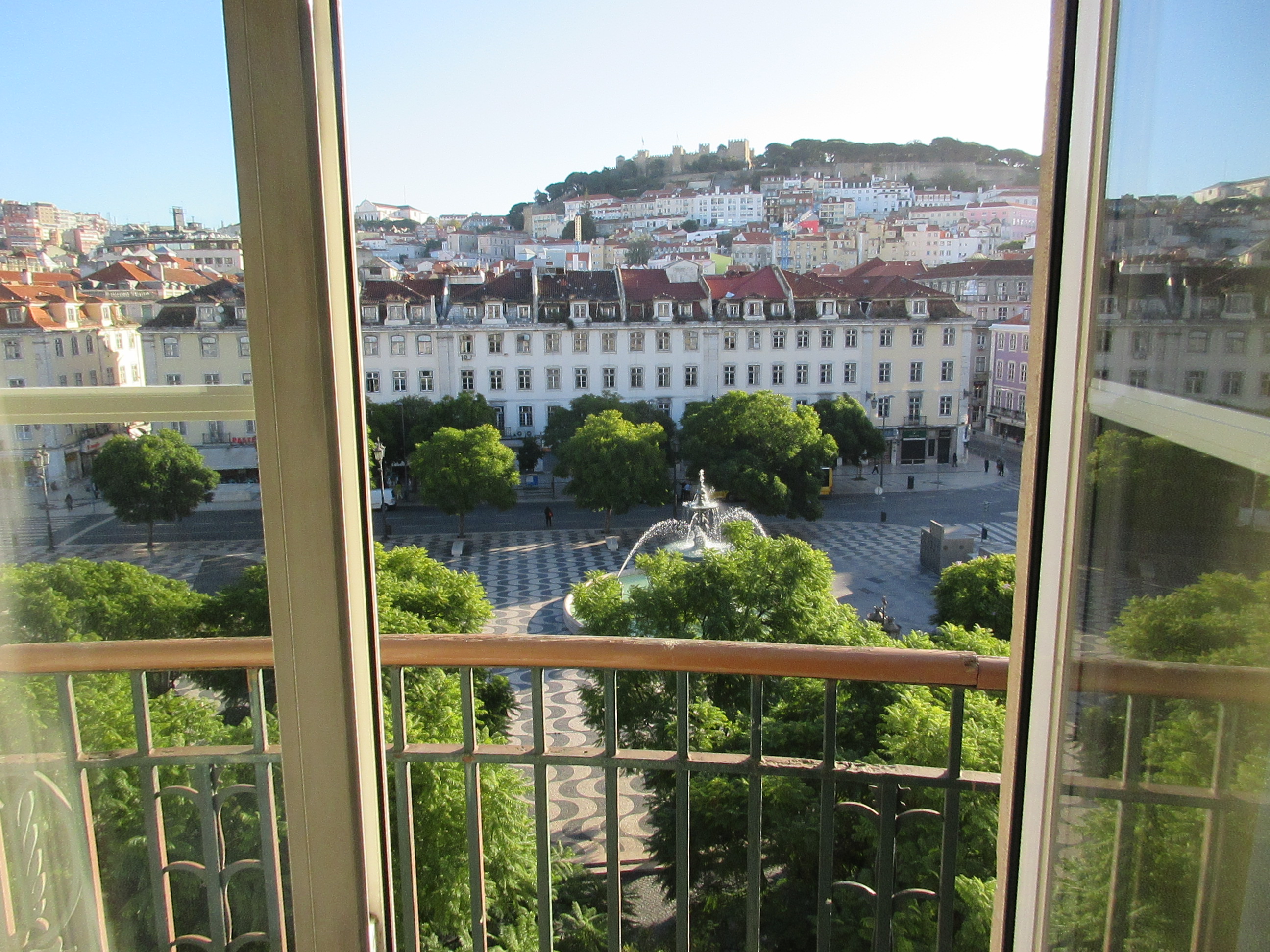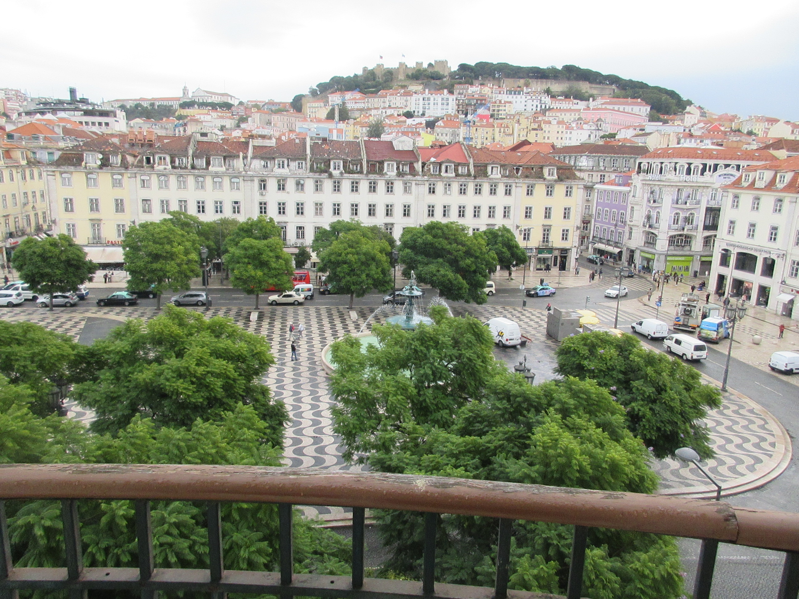 Вид из окон нашего номера на площадь Педру и крепость Сан-Жоржи: