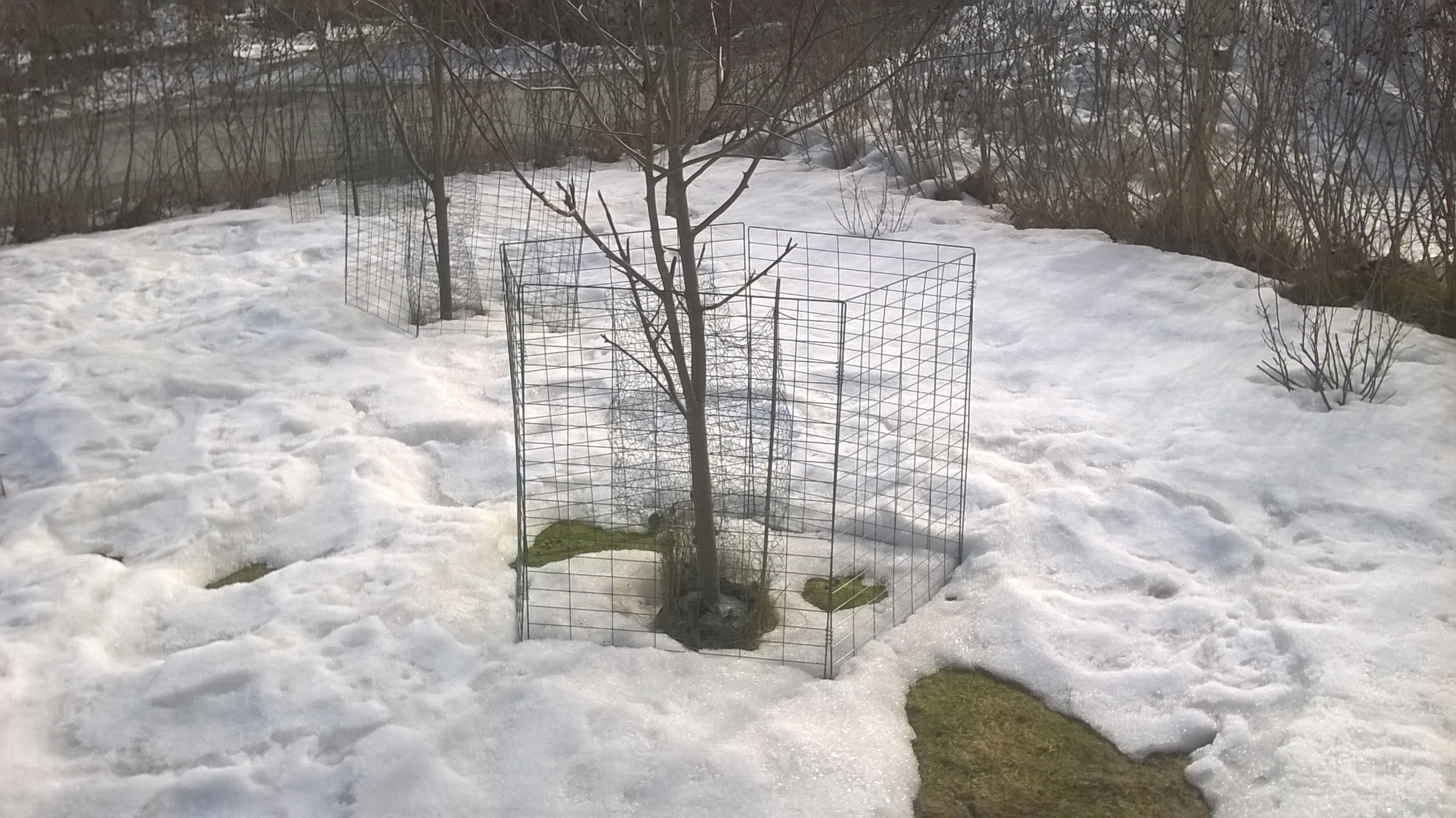 Зайцев вижу редко, но яблоньку объели, гады. Погибла.