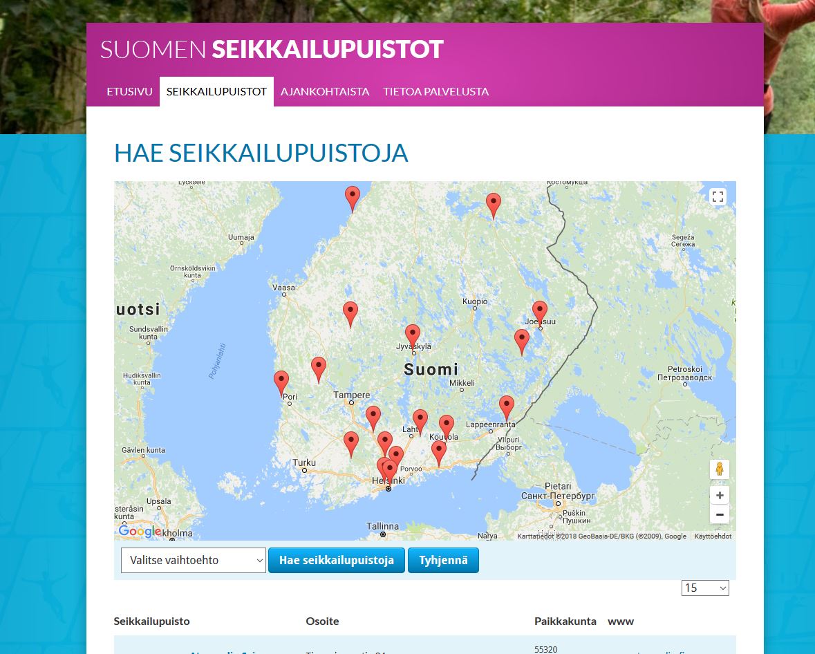 вот тут карта городов и местечек, где есть seikkailupuisto: