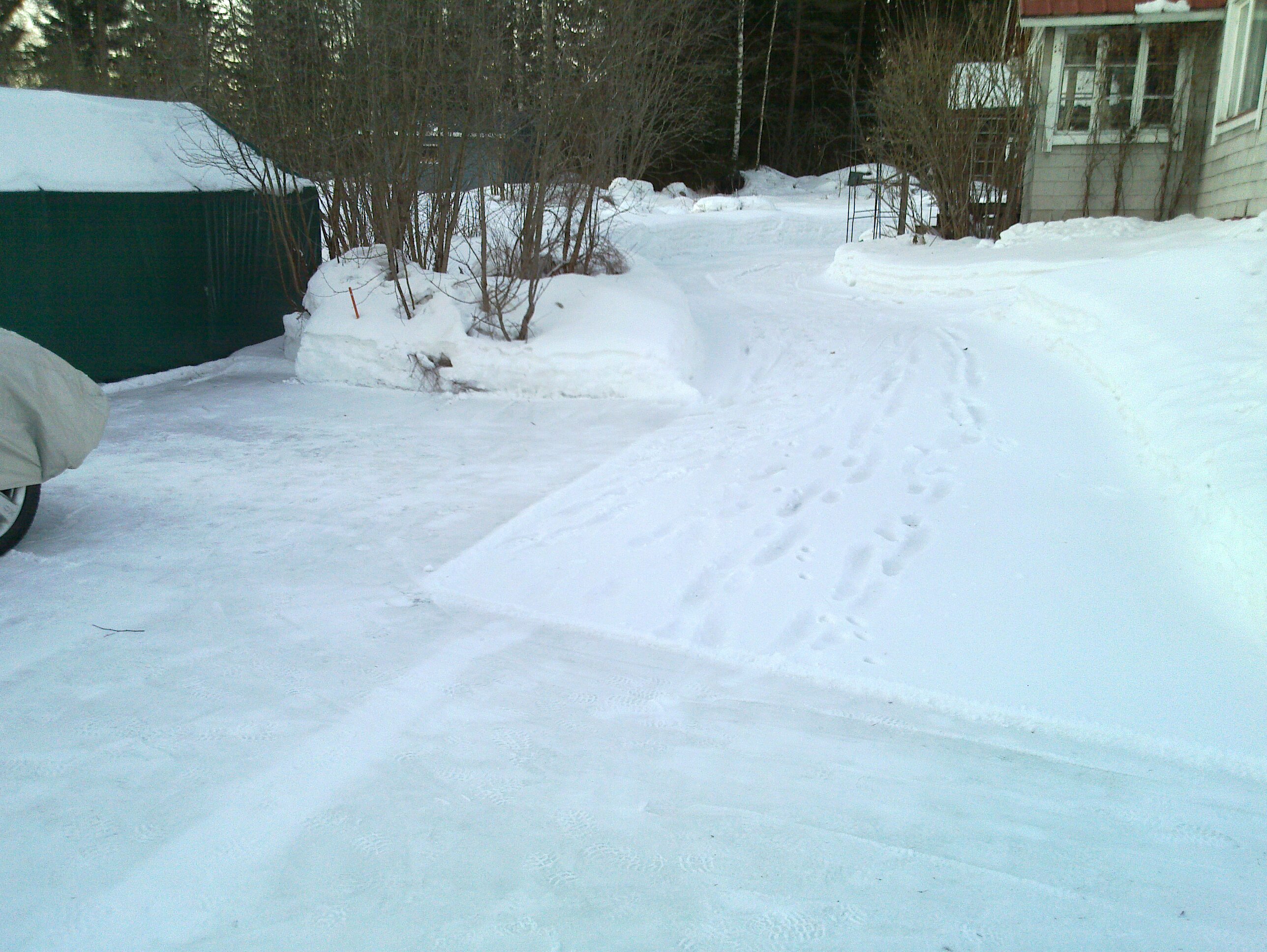 3.Дом построен в 2009, если бы работал первый старый финн, проблемы бы не было, он углы выскребал трактором лучше лопаты. Знал что склон, что там лед, что сколько...а тут сынуля.. Просто родился халтурщиком. И двор два въезда 400 кв. метров. Лопатой под дня махать.
