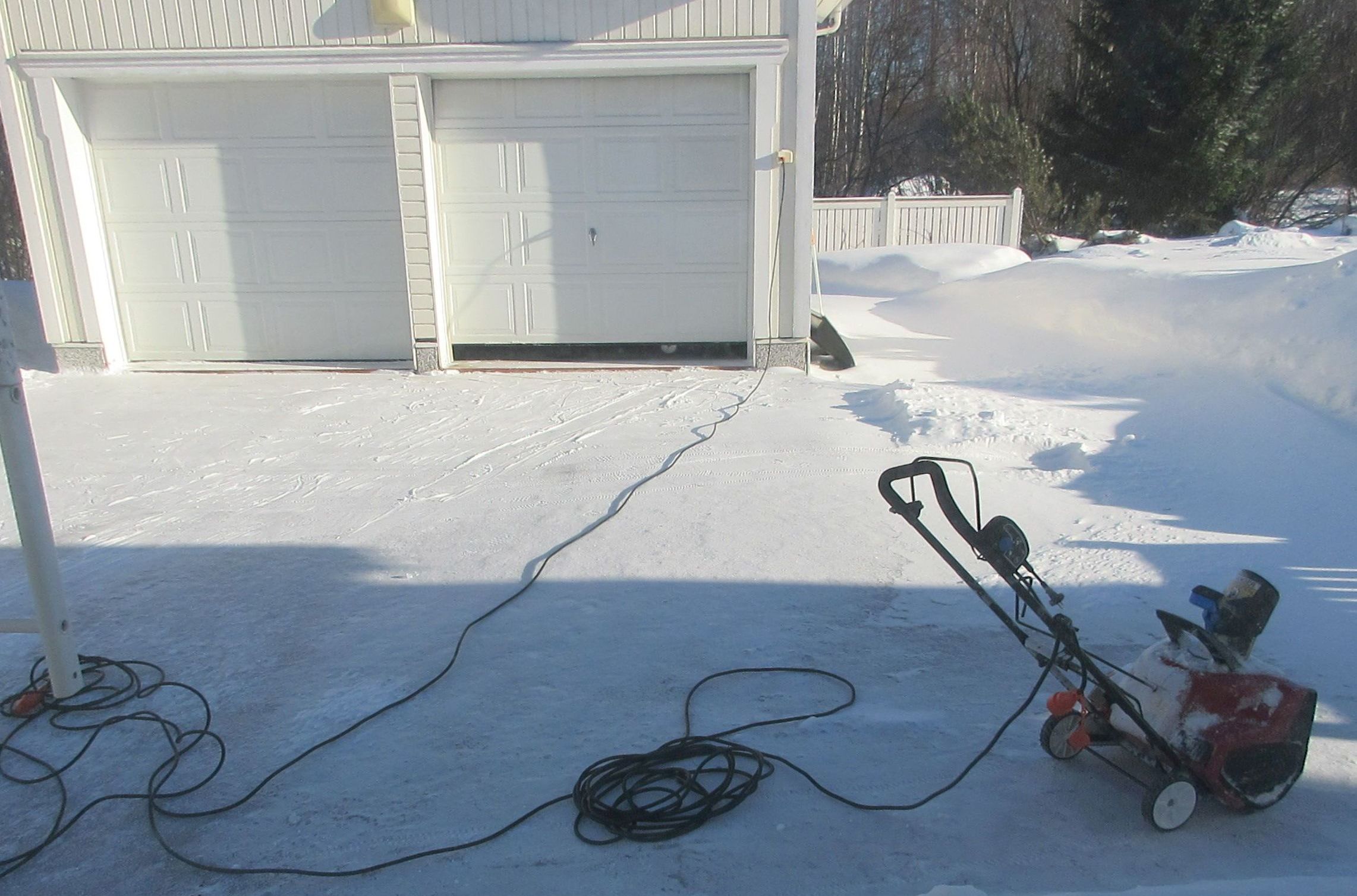 Я чищу лумиколой Фискарс 70см. Она лёгкая и крепкая. Помимо парковки прочищаю дорожку к дровяннице за домом чтобы можно было на машине или тракторе подвезти дрова сразу к двери. Снег свожу в огород детям на радость. Горки, трассы, замки... В прошлом году к лыжным каникулам сугробы были под 1,70м. Если за ночь наваливает 10см влажного снега и лумиколой не справится, то прошу проезжающий мимо трактор сгрести с парковки, а соседа прошу помочь бензиновой лумилинкой. Электричество... Да, я с дуру тоже купил себе электрическую косилку, пилу и кусторез... По тем же самым соображениям (экология, сразу заводится). Теперь с завистью смотрю, как у соседей косилка сама едет, а с пилой можно хоть на дерево, хоть в лес. А уж сколько было перерезано и оборвано удлинительных катушек на моих 25 сотках... Об электрической снегоуборке даже не слышал. Но что-то мне подсказывает, что я сильно дороже плачу за электричество, чем соседи за бензин.