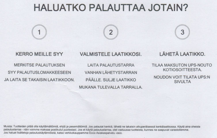 Инструкция была ЭККОвская: "Tilaa maksuton UPS-nouto kotiosoitteesta. Noudon voit tilata UPS:n sivulta."