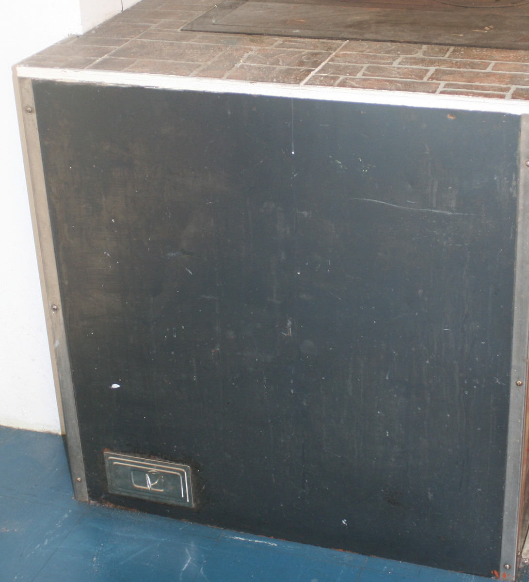 Так как маленькая крышка на ЛЕВОЙ стенке (и левая заслока предположительно для духовки), то предположу, что и карман для углей тогда в ЛЕВОМ дальнем углу духовки и бак с водой греется от духовки, а после прогорания дров и от углей в том кармане. Надо бы приподнять левую узкую полоску плиты (левее маленьких кругов) и посмотреть что там под ней слева (со стороны бака).