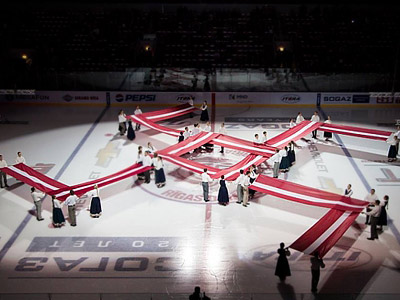 Континентальная хоккейная лига выступила с официальным заявлением по поводу церемонии открытия матча регулярного чемпионата КХЛ в Риге между местным "Динамо" и ханты-мансийской "Югрой", во время которой на льду был развёрнут орнамент, похожий на свастику.