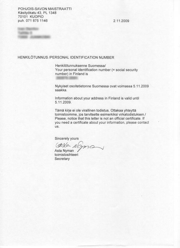 ЗЫ А как получить "рулон" из маистрата с henkilötunnus'ом?
