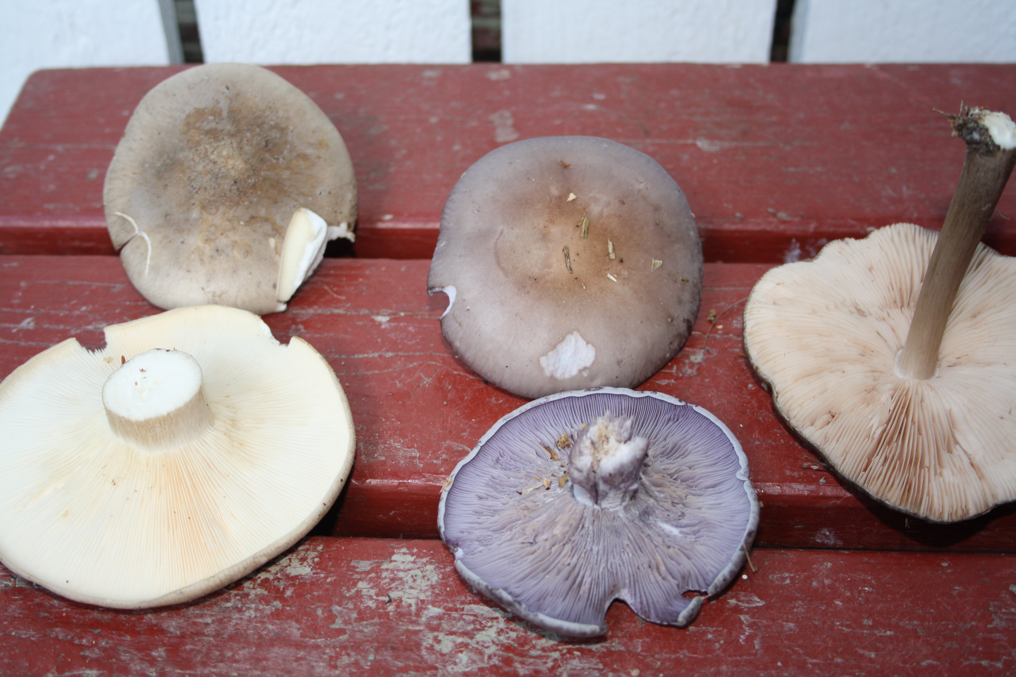грибы слева-направо: рядовка, рядовка фиолетовая и *зонтик* о котором писали выше. Все этo, обычно, растет в парках. Съедобные.