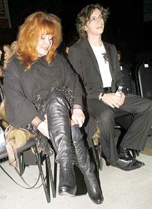 Парочка уже было прошла в зал, как вдруг на них налетели фотографы (и откуда они только берутся на модных показах!). Алла Борисовна заволновалась - все-таки ужасно неприятная неожиданность, попала, можно сказать, как кур в ощип - и попыталась увернуться от фотовспышек. При этом на лице было написано, как она любит всех этих людей. "Эти люди" тут же ответили взаимностью: "Примадонна-то со вчерашнего дня не переодевалась. И парикмахера не вызывала!" (Журналисты таблоидов вместе с госпожой Пугачевой провели прошедшую ночь на презентации нового альбома Ирины Аллегровой и потому за слова свои отвечали).