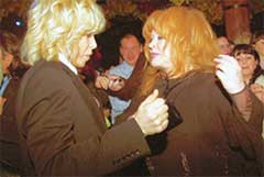 Те же, кто успел насытиться, развеселились вдрызг. Владимир Винокур вместе с Борисом Моисеевым корчили рожи перед камерами и вскрикивали: "Супер! Гламур!" Футболист Дмитрий Булыкин обнимал дизайнера Катю Кобзон и ювелира Дамиани одновременно. Игорь Крутой и Александр Достман уединились в курилке и устроили там любимую светскую забаву - "покажи фотографу козью морду". В курилку было сунулась незадачливая поклонница, чтобы сфотографировать на память любимого продюсера и любимого рапсода, а они как выскочат, как выпрыгнут, как пойдут клочки по закоулочкам!