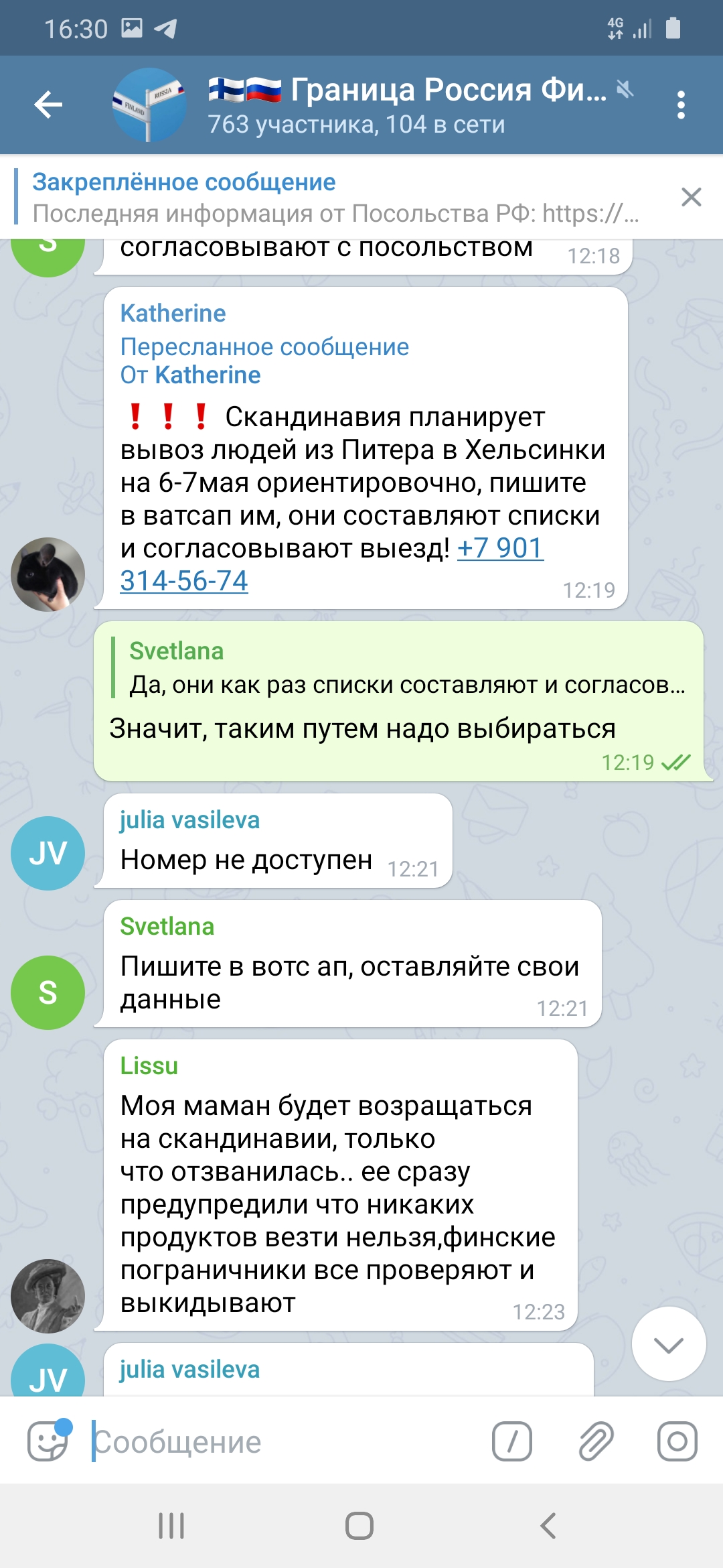 "Уважаемый .........., к сожалению телефон, который Вы указали в обращении, не обслуживается, поэтому сообщаем в письме. Нам удалось добиться разрешения на выезд из страны для граждан Российской Федерации, постоянно проживающих в Финляндии и иных странах. Принято дополнительное распоряжение Правительства РФ №1170-р от 29.04.2020 года, разрешающее выезд гражданам РФ, имеющим вид на жительство или гражданство другой страны, но единоразово. Это означает, что если Вы повторно въедете в РФ, выезд будет возможен только по завершении действующих ограничений. Выезд возможен уже сейчас, в погрануправлении сообщили, что все указания на пункты пропуска уже отданы. Если есть вопросы, позвоните по телефону..."