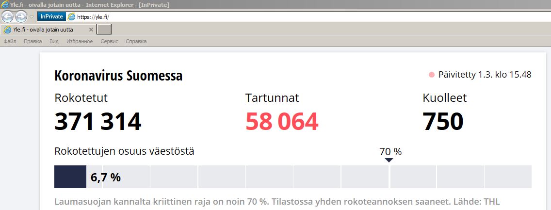 Т.е. ситуация будет развиваться таким образом-если все будет идти ,как и сейчас,ну может в первой половине марта подскочит количество зараженных малость,то Суоми даже не посмотрит в сторону ,,спутника'',а если что то пойдет не так,кто знает?