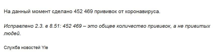 Может и не брехня, но чьи данные вернее? Финской или русской YLE?
