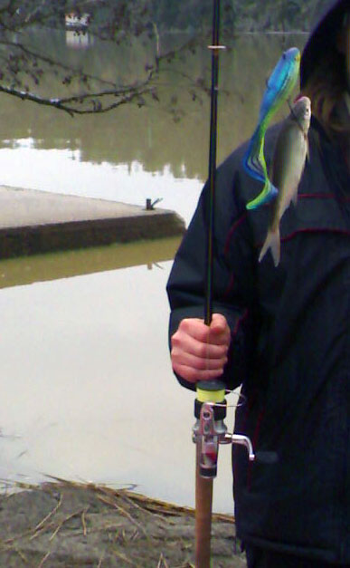 ....сегодня поймал Леща, под килограм, ЗА СПИНУ на Силиконовую рыбку