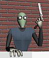 (Может сделать очень страшное лицо) Скорчить козью морду что-ли?