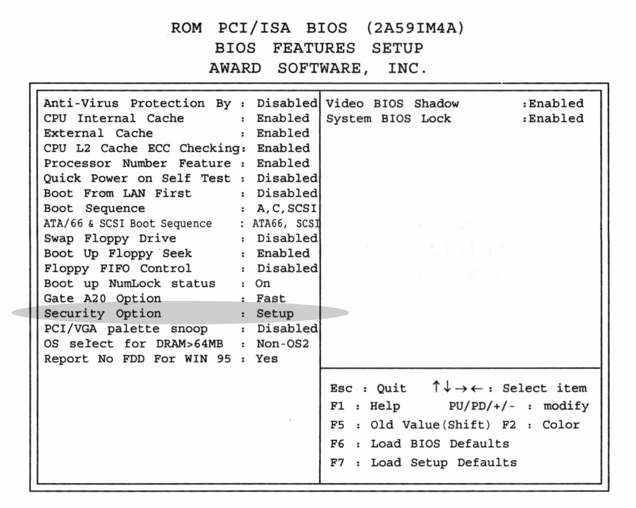 Также не по теме отвечу. Это можно сделать в BIOSе. Для этого во время тестирования памяти нажми "F1" (или другую клавишу в зависимости от версии, на мониторе указывается, что надо нажать). Выбери строку меню "Supervisor password" и введи пароль. Потом не забудь поменять настройки в меню "BIOS FEATURES SETUP" (на картинке я подсветил где надо поменять) в строке "Security Option" с "Setup" на "System". И выйди из BIOS с сохранением настроек. Для миллениума это наиболее рациональное решение, чтобы не ставить дополнительные программы для установки парольной защиты.