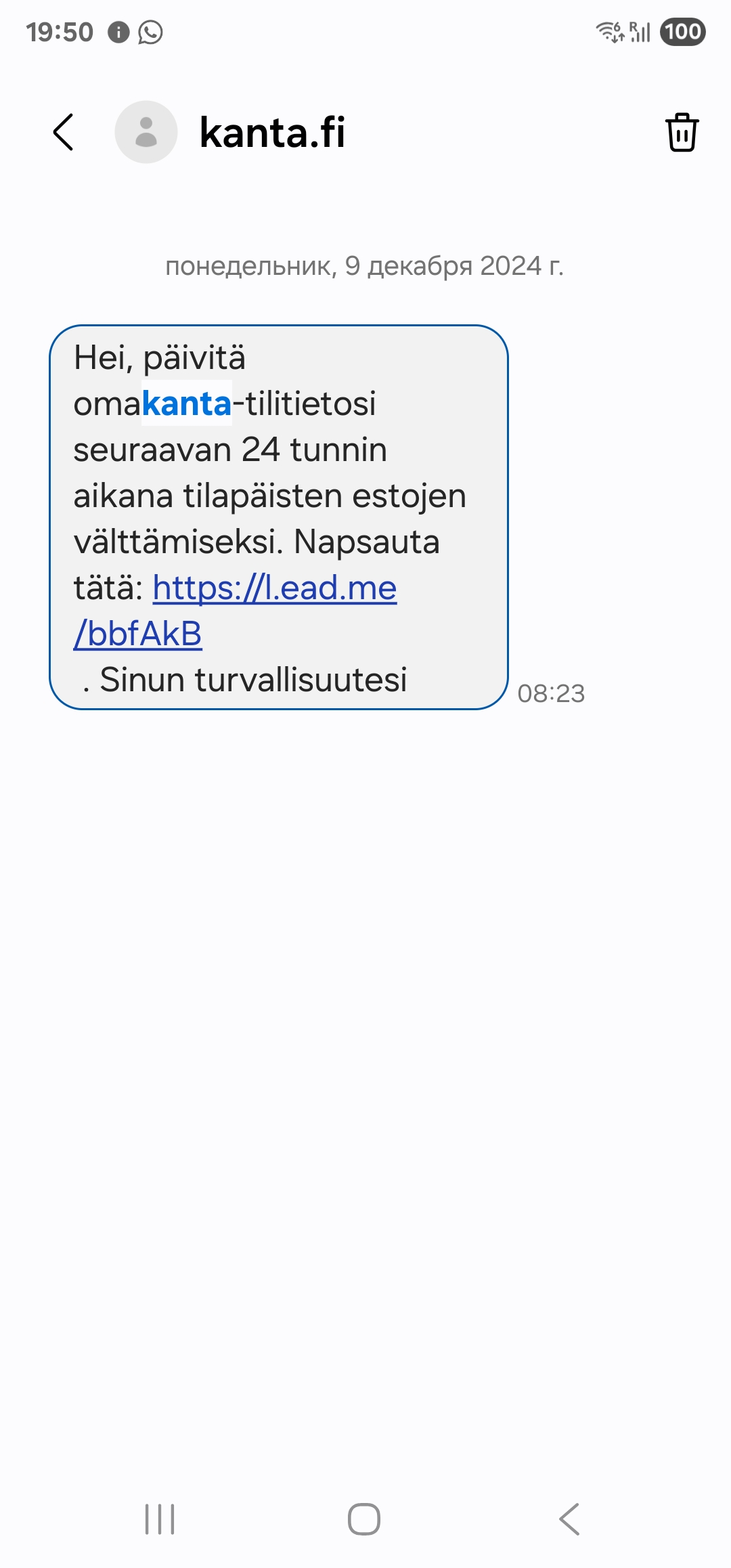 Несколько месяцев тому назад по глупости, в стрессе и в спешке нажал на ссылку в этом сообщении. Как результат пришлось полностью обновлять все банковские карты, коды доступа, приложения и пр. Но банк справился - ничего мошенникам с(тыр)ить не удалось. Но геморроя отхватил норм.