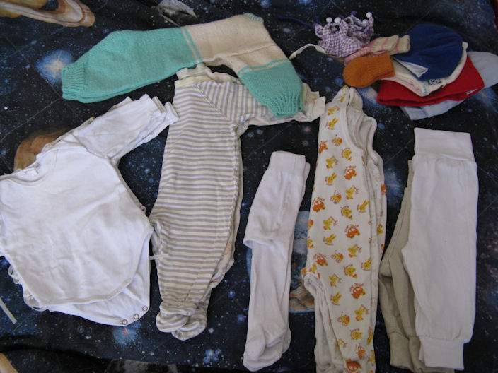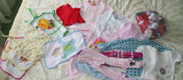 отдам небольшой пакет детских вещей:4 кофточки(2 из них для например рисования красками,что бы не жалко было пачкать)1 бодик,4 слюнявчика,шапочка тоненькая под основную шапку и куча разных колготок и носок.