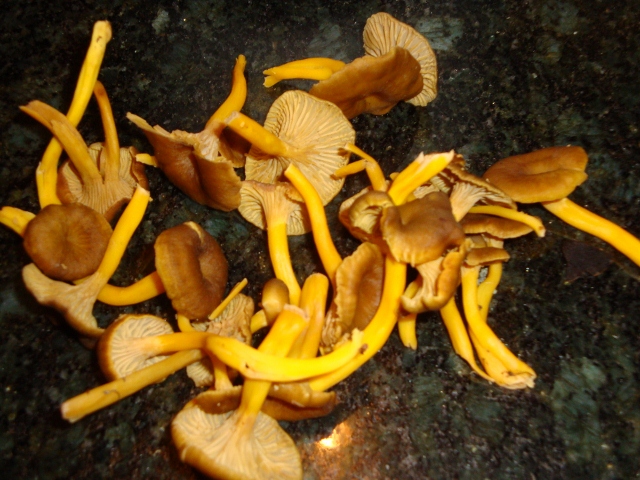 Я вот сегодня,напимер,нашла грибы,похожие на лисички,но не они:повертела в руках-а не рыжики ли?