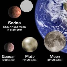 Как заявил представитель Калифорнийского технологического института Майк Браун, новая планета по размеру больше Плутона, диаметр которого около 2250 км, и находится в два раза дальше от Солнца. По подсчетам ученых, сейчас расстояние до нее составляет 97 расстояний от Земли до Солнца. Вокруг Солнца планета обращается примерно за десять с половиной тыс. земных лет. А радиус орбиты — 130 млрд километров.... http://www.utro.ru/articles/2005/07/30/463392.shtml